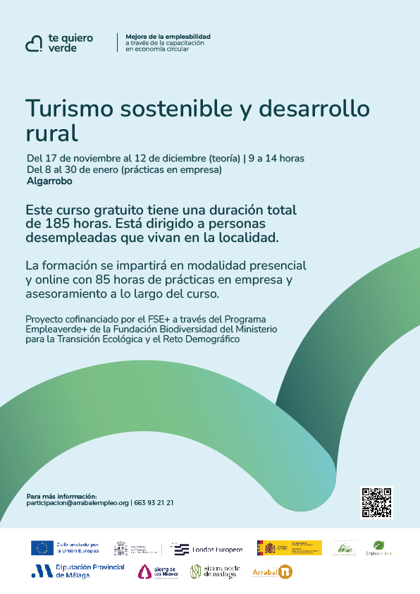 El curso “Turismo sostenible y desarrollo rural” comienza este 17 de noviembre en Algarrobo y aún estás a tiempo de apuntarte.