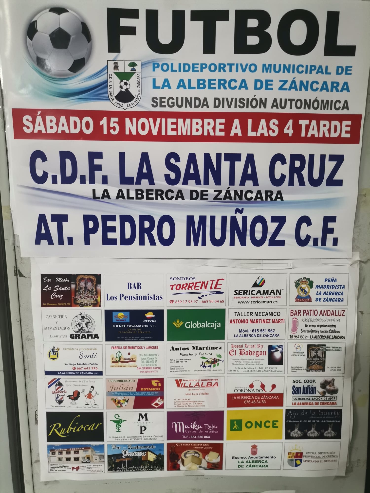 Hoy a las 16:00 h, en el Polideportivo Municipal de La Alberca de Záncara, el C.D.F. La Santa Cruz recibe al At. Pedro Muñoz C.F. En un nuevo partido da Segunda División Autonómica.