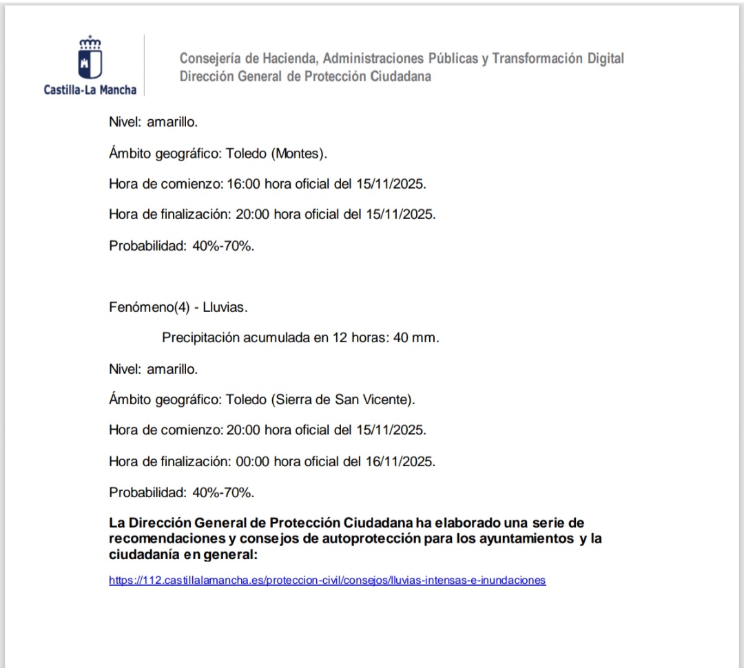 La AEMET rebaja la alerta a nivel amarillo para las próximas horas. Seguimos con las recomendaciones de precaución