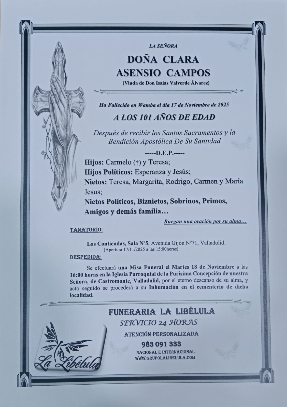 Buenos días, nos comunica la familia que ha fallecido nuestra vecina CLARA, una excelente persona, desde este Ayuntamiento en nombre de todos los vecinos queremos expresar nuestro dolor a toda la familia.