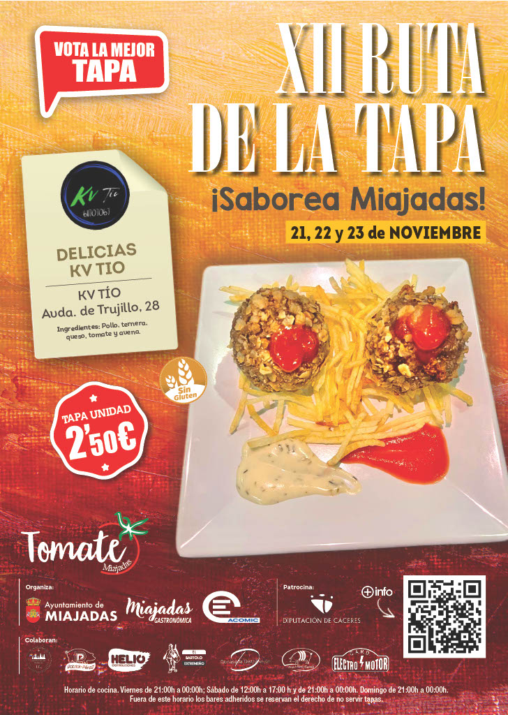 La propuesta que se nos presenta desde 𝗞𝗩 𝗧𝗜́𝗢 para esta 12ª edición de la Ruta de la Tapa de Miajadas lleva como nombre 𝗗𝗲𝗹𝗶𝗰𝗶𝗮𝘀 𝗞𝗩 𝗧𝗜́𝗢, ¡toda una declaración de intenciones!: Una tapa pensada para quienes disfrutan de lo auténtico, sin complicaciones y con mucha personalidad.