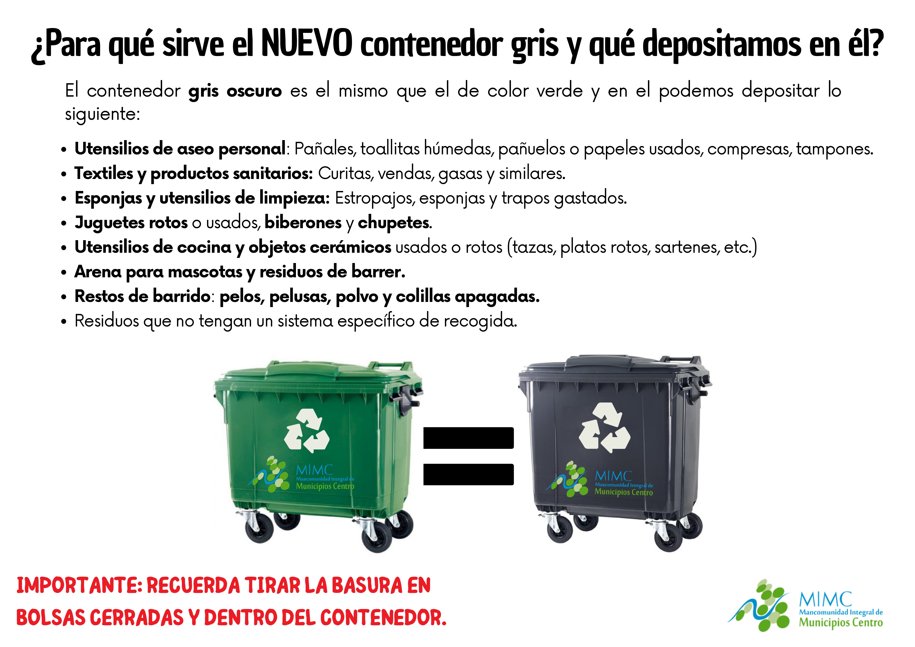 Se adjunta información de los residuos que se pueden depositar y los que NO en el nuevo contenedor gris.