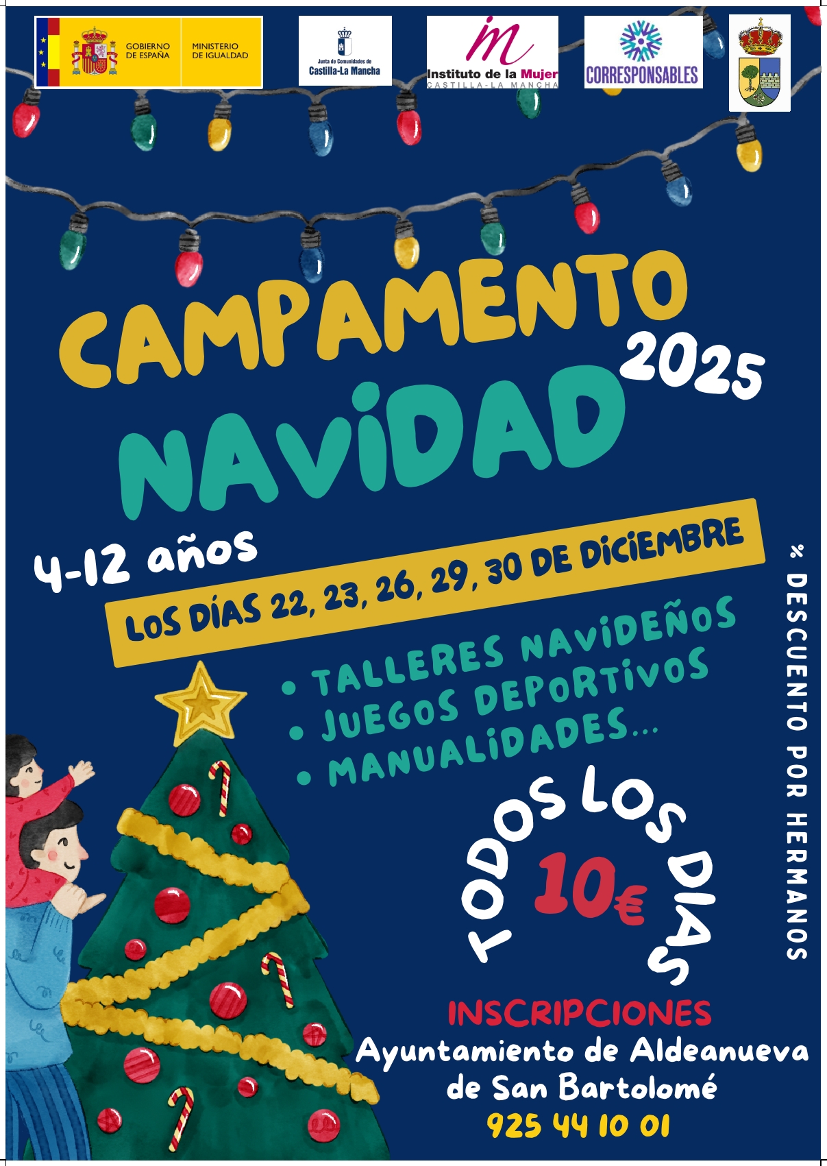Ya está abierto el plazo de INSCRIPCIONES para el CAMPAMENTO DE NAVIDAD 2025.10€ TODOS LOS DÍAS: 22, 23, 26, 29, 30 DE DICIEMBRE.DE 4 A 12 AÑOS.DESCUENTOS POR HERMANOS.
