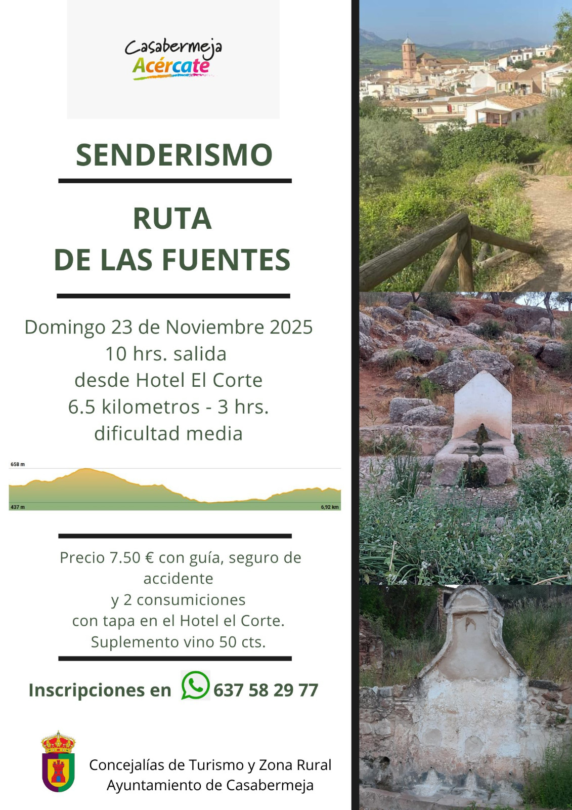 ✅ Y el domingo hacemos la tradicional "Ruta de las Fuentes" ⛲ que tras las últimas lluvias 💦☔ empiezan a recuperar su caudal, una ruta circular 🌀 que comenzaremos en el Restaurante "El Corte" haciendo un recorrido por 5 de las fuentes de Casabermeja.