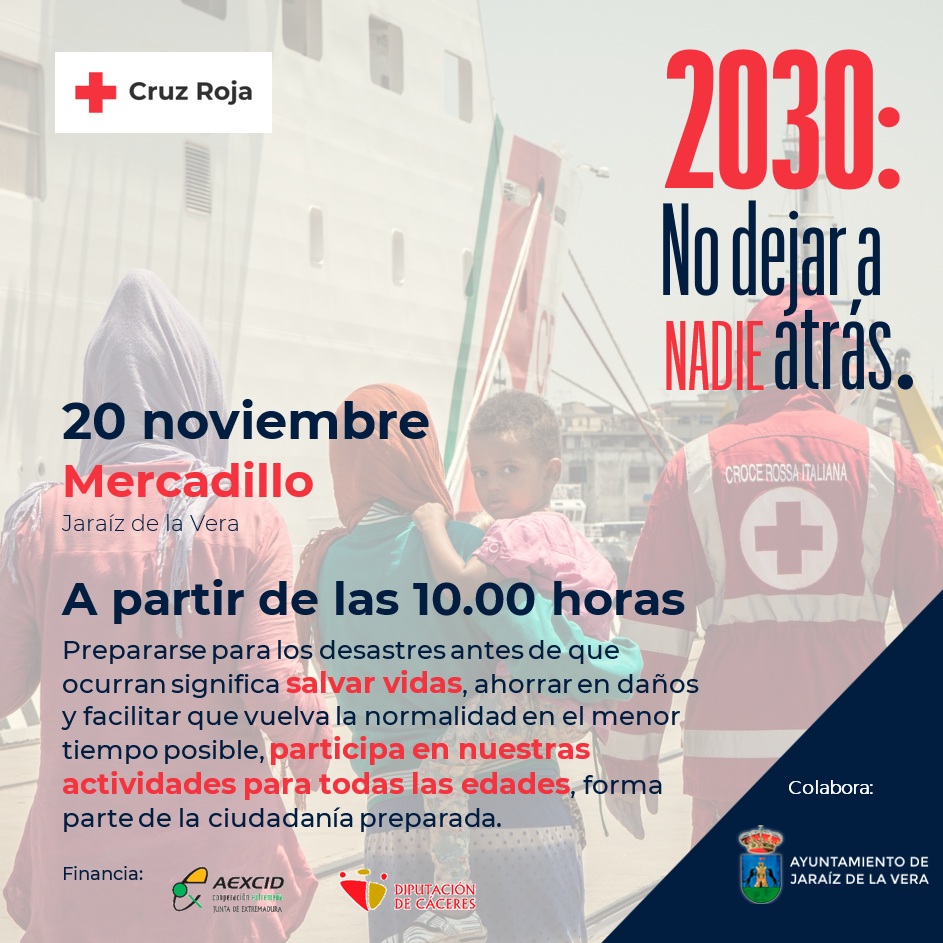 El voluntariado de Cruz Roja en la Comarca de la Vera, estará mañana jueves 20 de noviembre, a partir de las 10.00, en el mercadillo de Jaraíz de la Vera para acercar esta información a la ciudadanía y “No dejar a Nadie atrás” en la respuesta a los desastres.