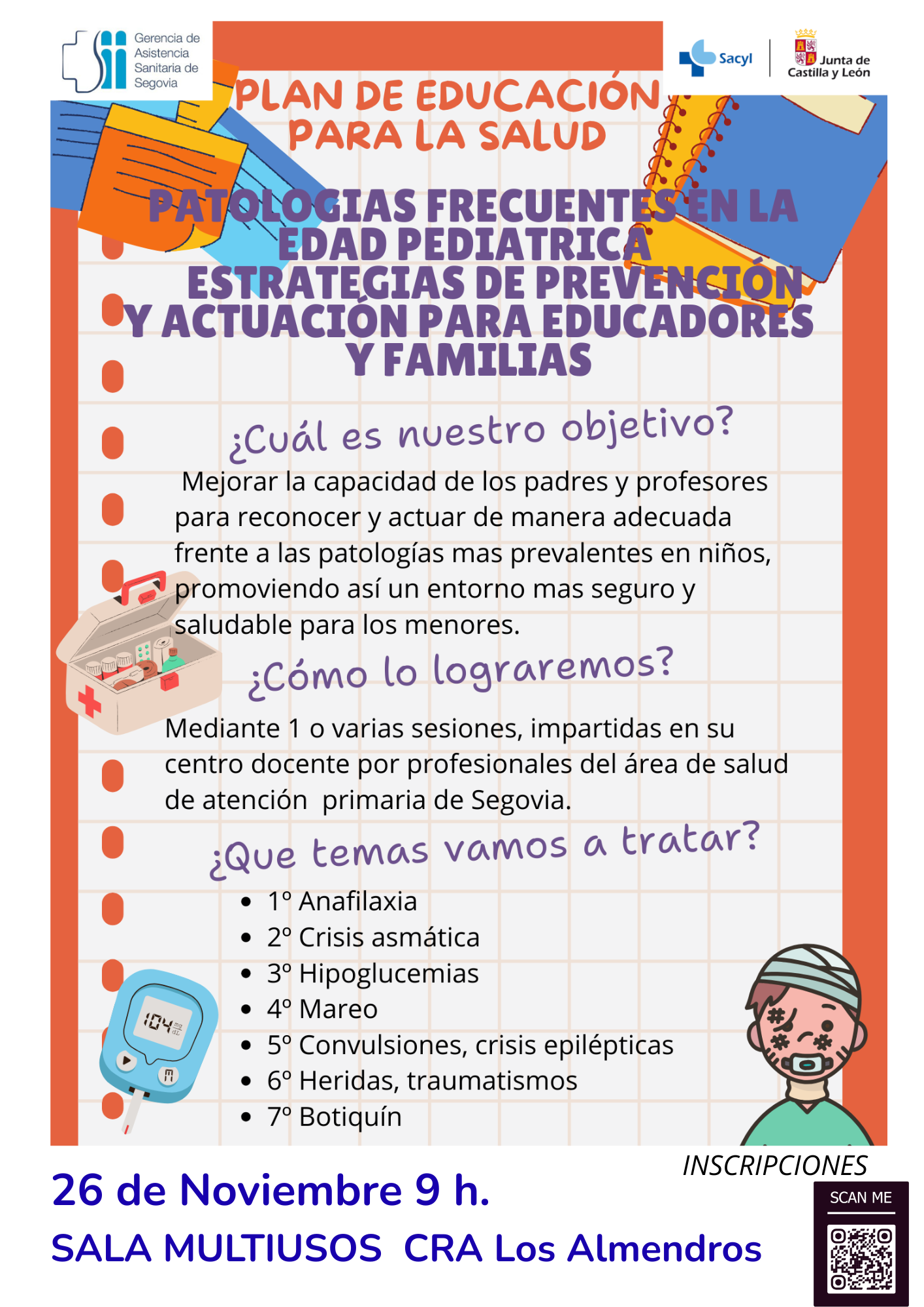 Patologías frecuentes en la edad pediátrica, estrategias de prevención y actuaciones para educadores y familias.26 de Noviembre de 2025 a las 9:00 horasSala Multiusos CRA "LOS ALMENDROS"