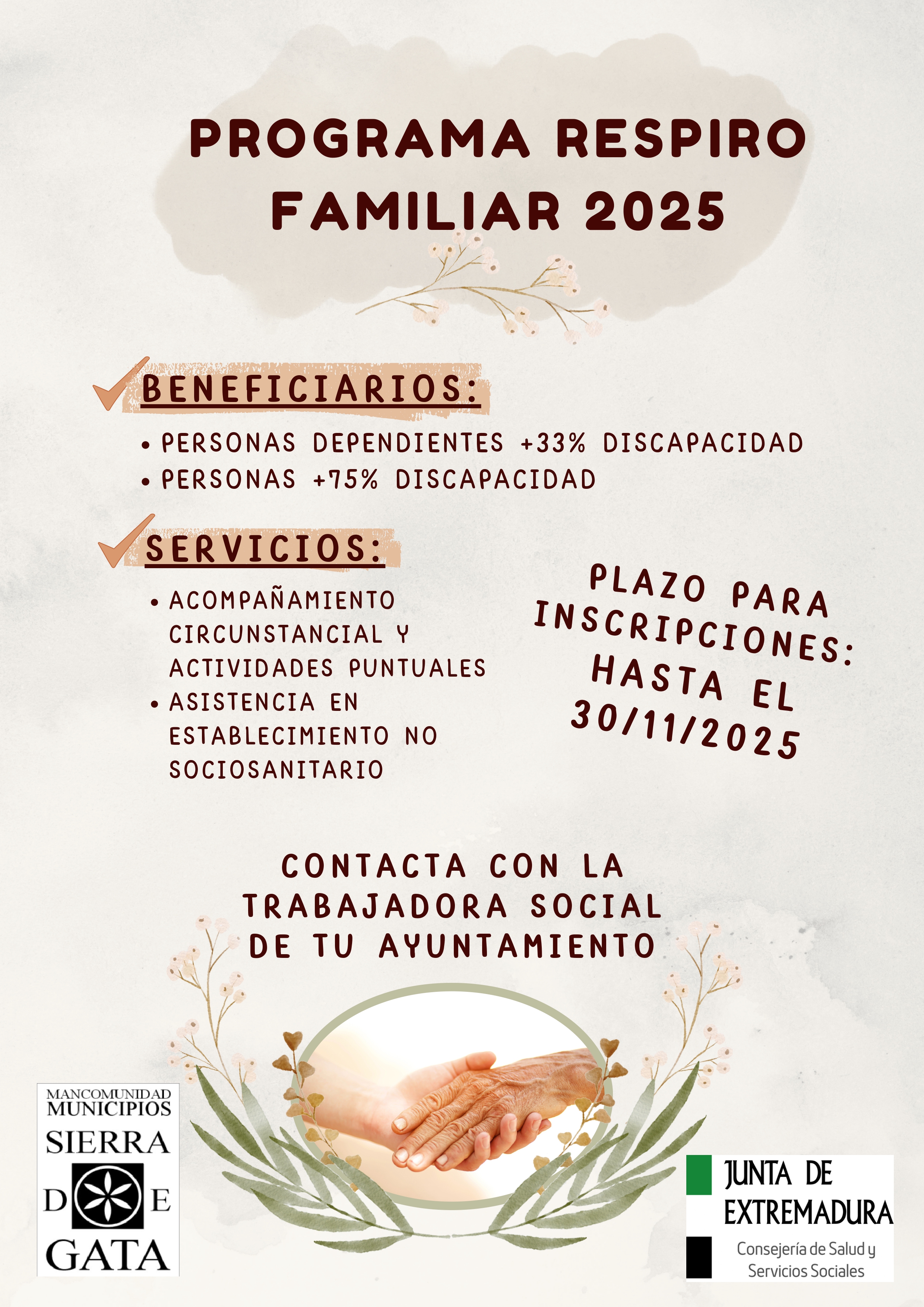Se ampl铆a el plazo de inscripci贸n del Programa Respiro Familiar, un servicio de ocio y apoyo dirigido exclusivamente a personas con discapacidad, hasta el 30 de noviembre de 2025.