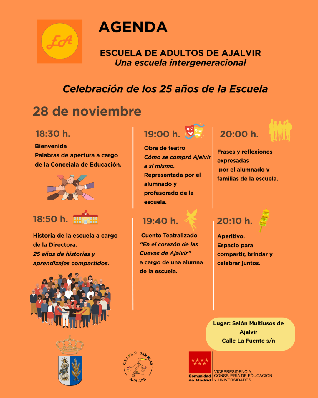 La Escuela de Adultos de Ajalvir cumple un cuarto de siglo, y queremos compartir contigo esta gran alegría. Han sido 25 años llenos de esfuerzo, ilusión y logros, donde cada persona ha dejado huella en nuestra historia.