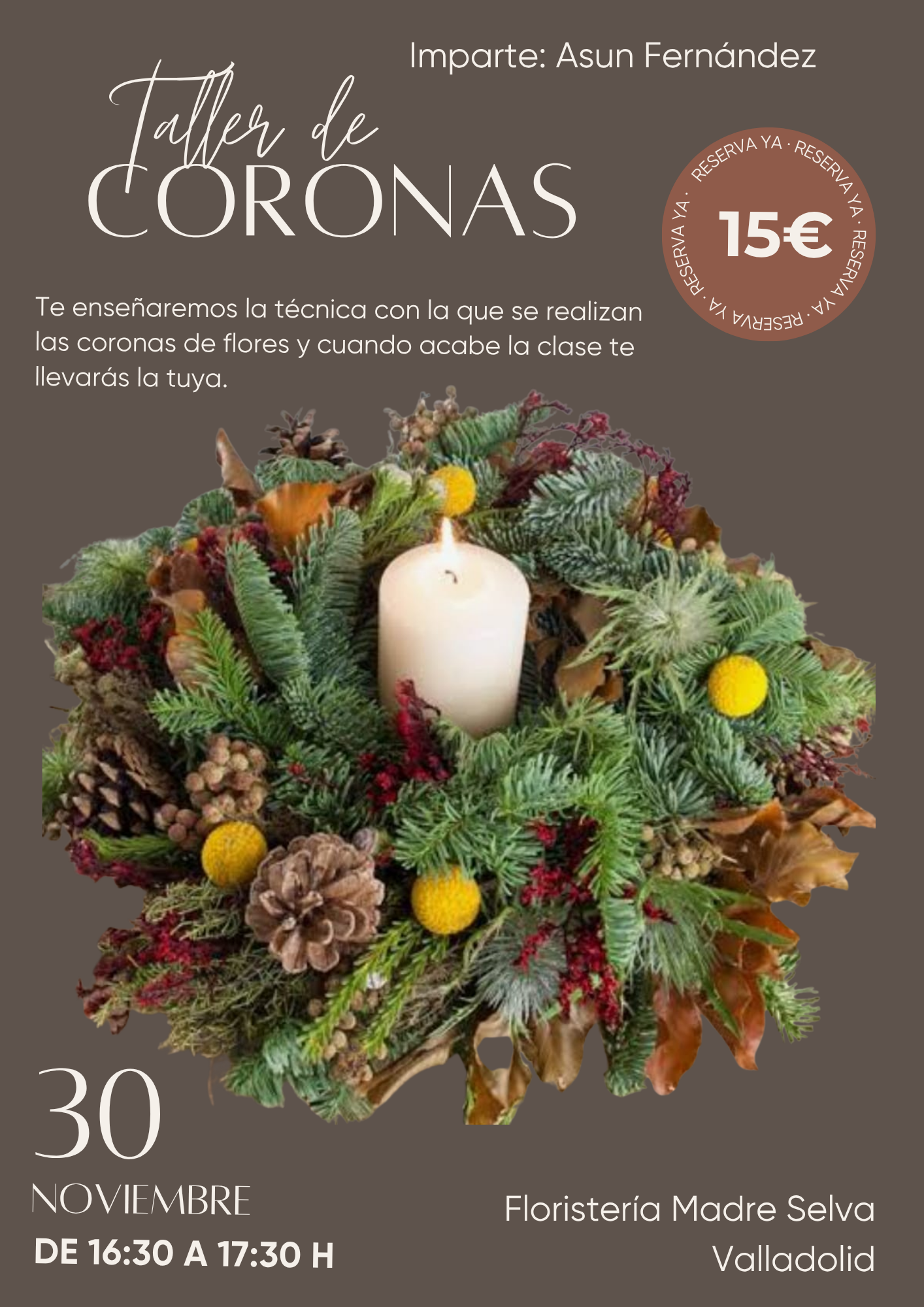 Incluye materiales y te llevarás una bonita corona elaborada por ti.