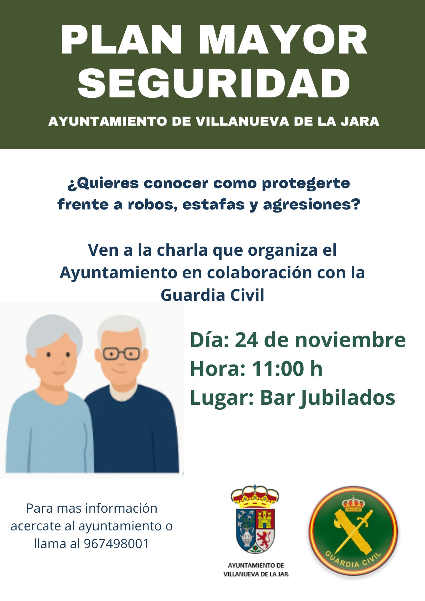 El Ayuntamiento de Villanueva de la Jara, en colaboración con la Guardia Civil, organiza una charla informativa dirigida especialmente a las personas mayores.