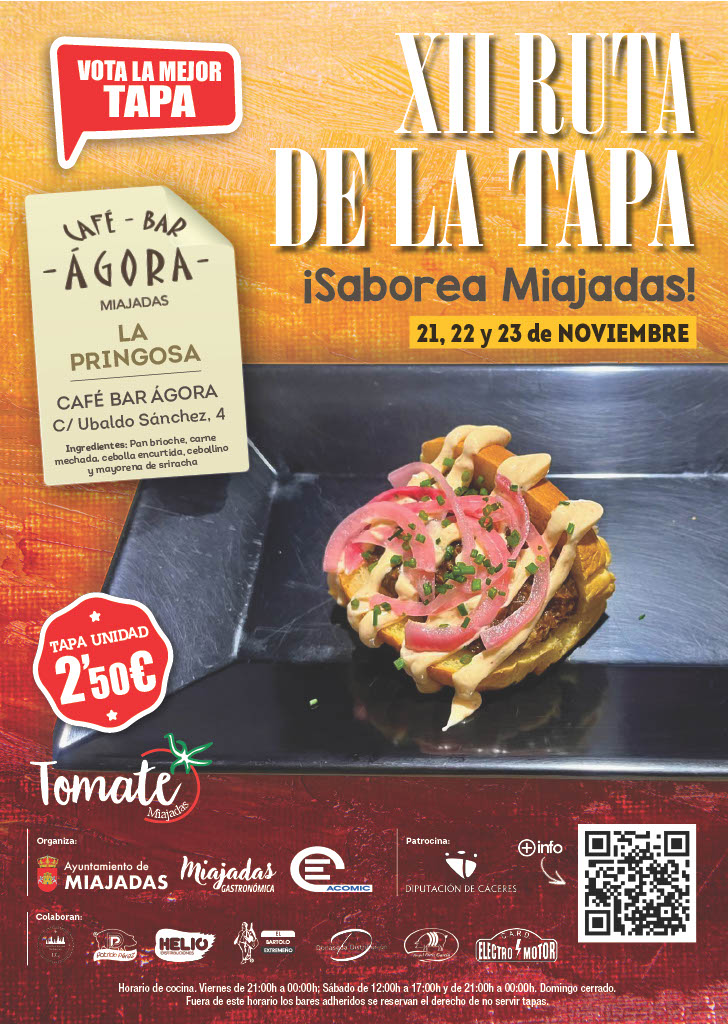 No olvidéis votar por vuestra tapa favorita y pedir vuestro rutero en los locales participantes: Bar Cervantes • Café Bar Ágora • Café Bar Santiago • Finca La Desa • KV Tío • Restaurante La Palmera • Zoco Gastro Pub.