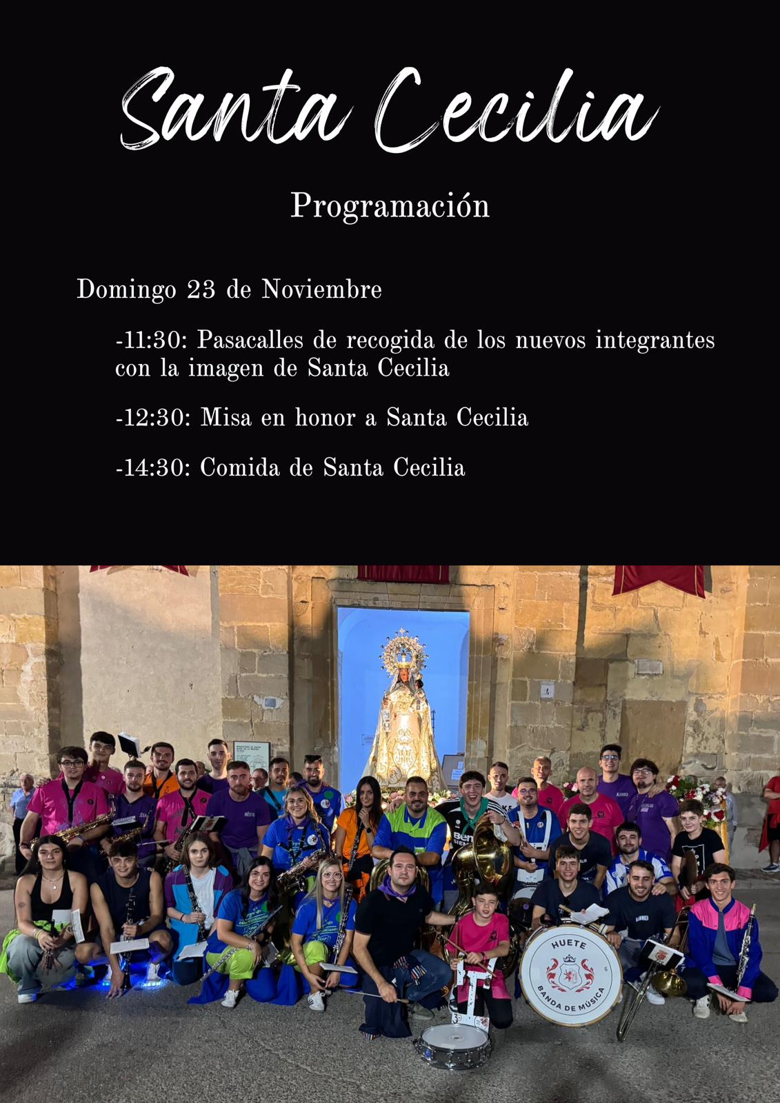 Os dejamos en esta entrada la programación de la celebración de Santa Cecilia organizada por la Banda de Música de Huete, que será mañana domingo 23 de noviembre, con pasacalles y misa a partir de las 11:30 horas: https://www.huete.org/wp/2025/11/22/%f0%9f%8e%b5%f0%9f%8e%b6-feliz-dia-de-santa-cecilia-a-la-banda-d...