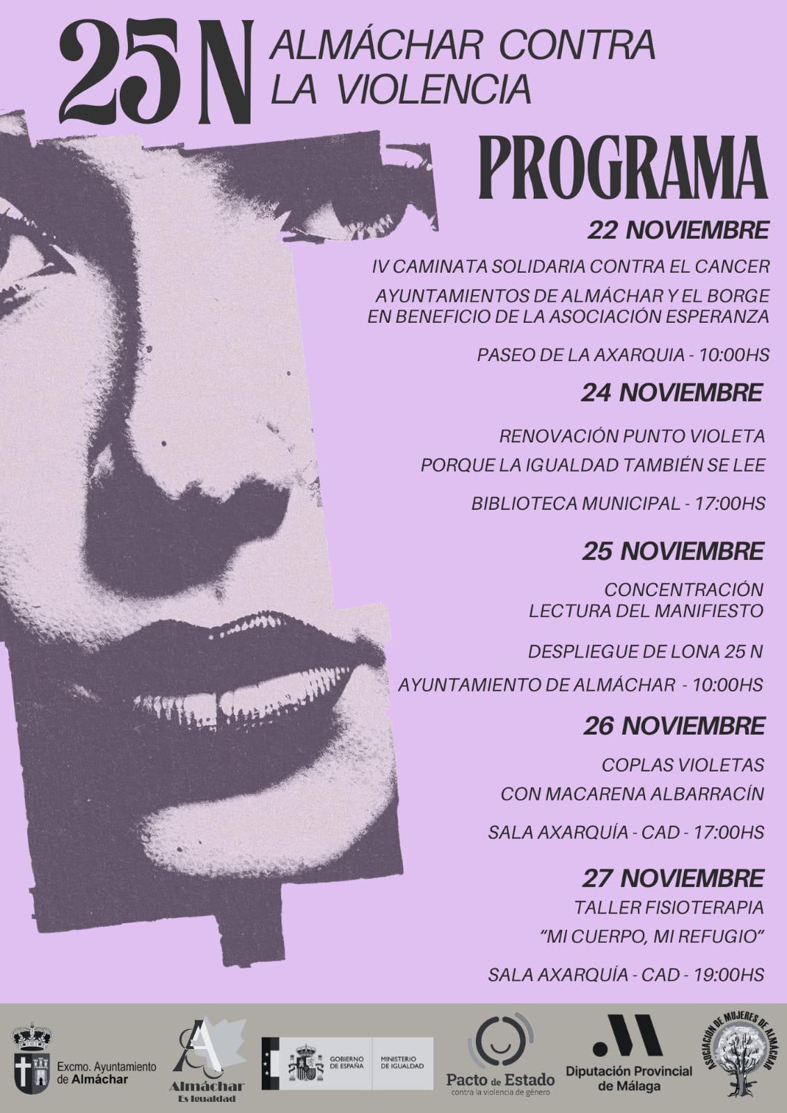 📣 ¡Recordamos las actividades del 25N en Almáchar! 💜