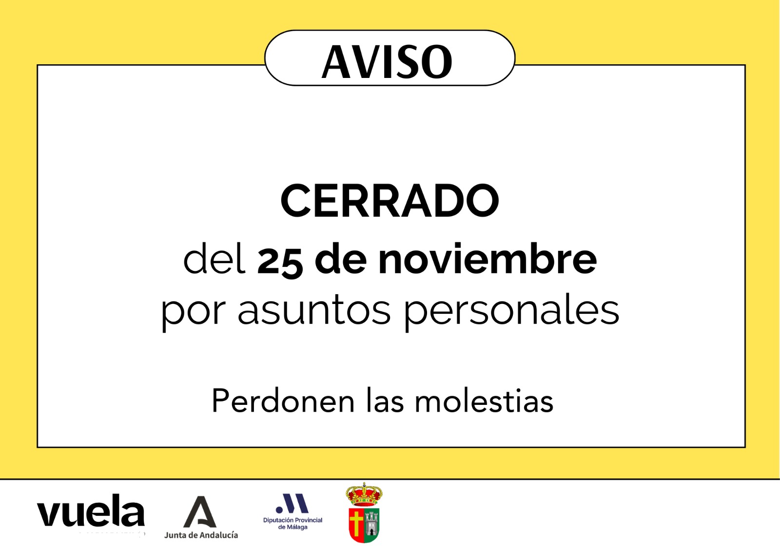 Nuestro establecimiento permanecerá cerrado el 25 de noviembre por asuntos personales.