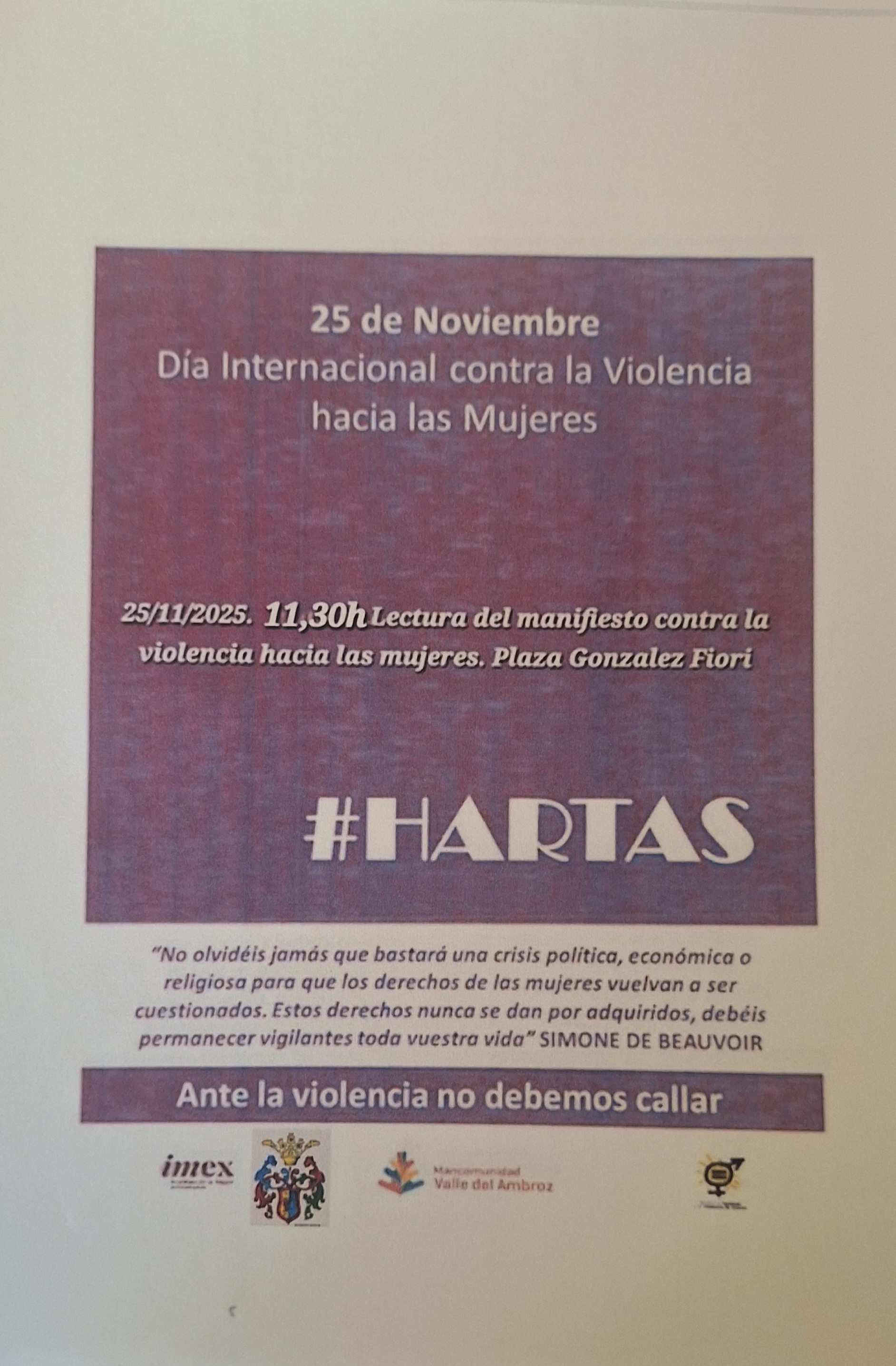 La lectura tendrá lugar el martes, 25 de noviembre de 2025, a las 11:30 h, en la Plaza González Fiori.