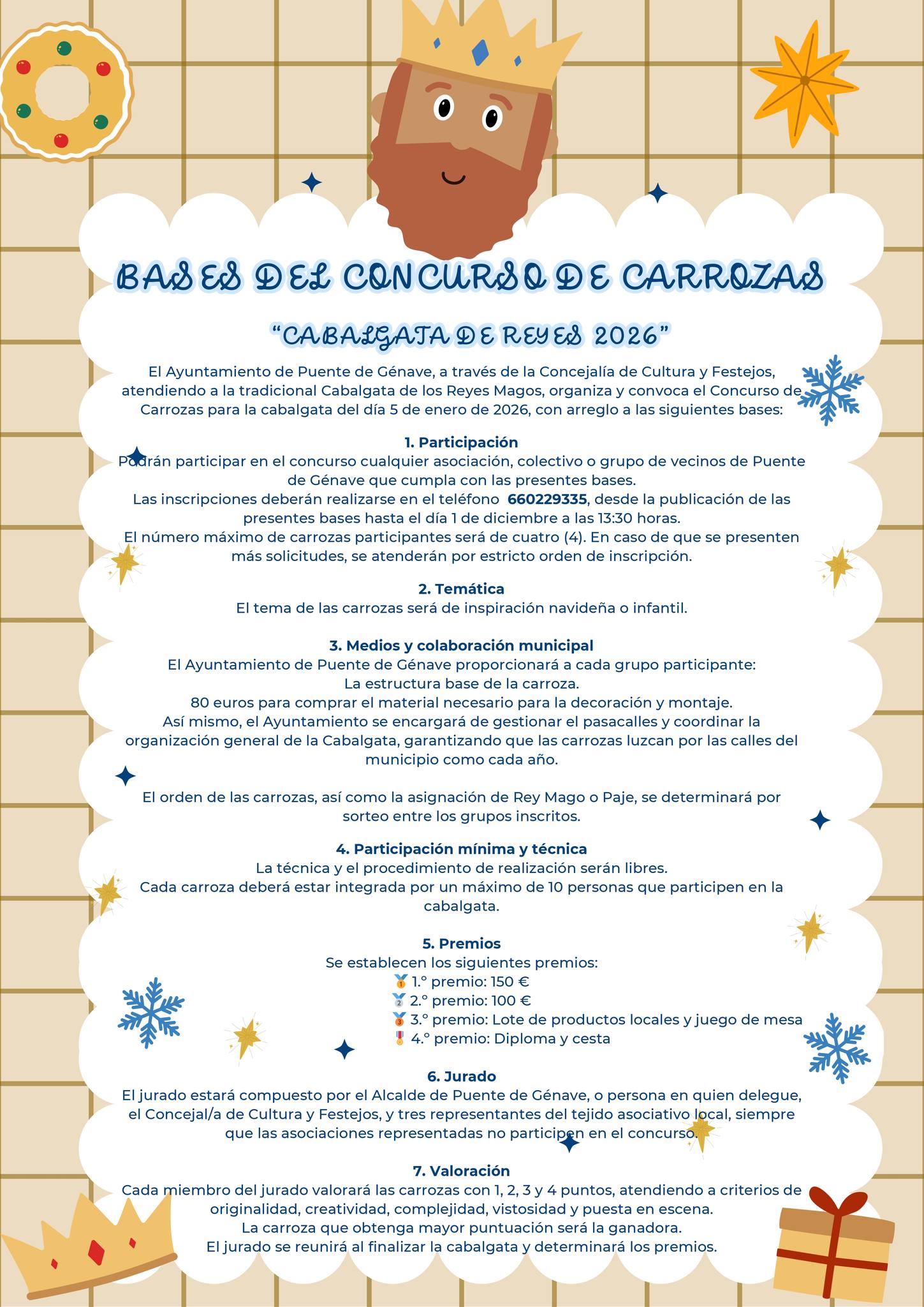Recordamos que sigue abierto el plazo para participar en el Concurso de Carrozas de la Cabalgata de Reyes 2026.
