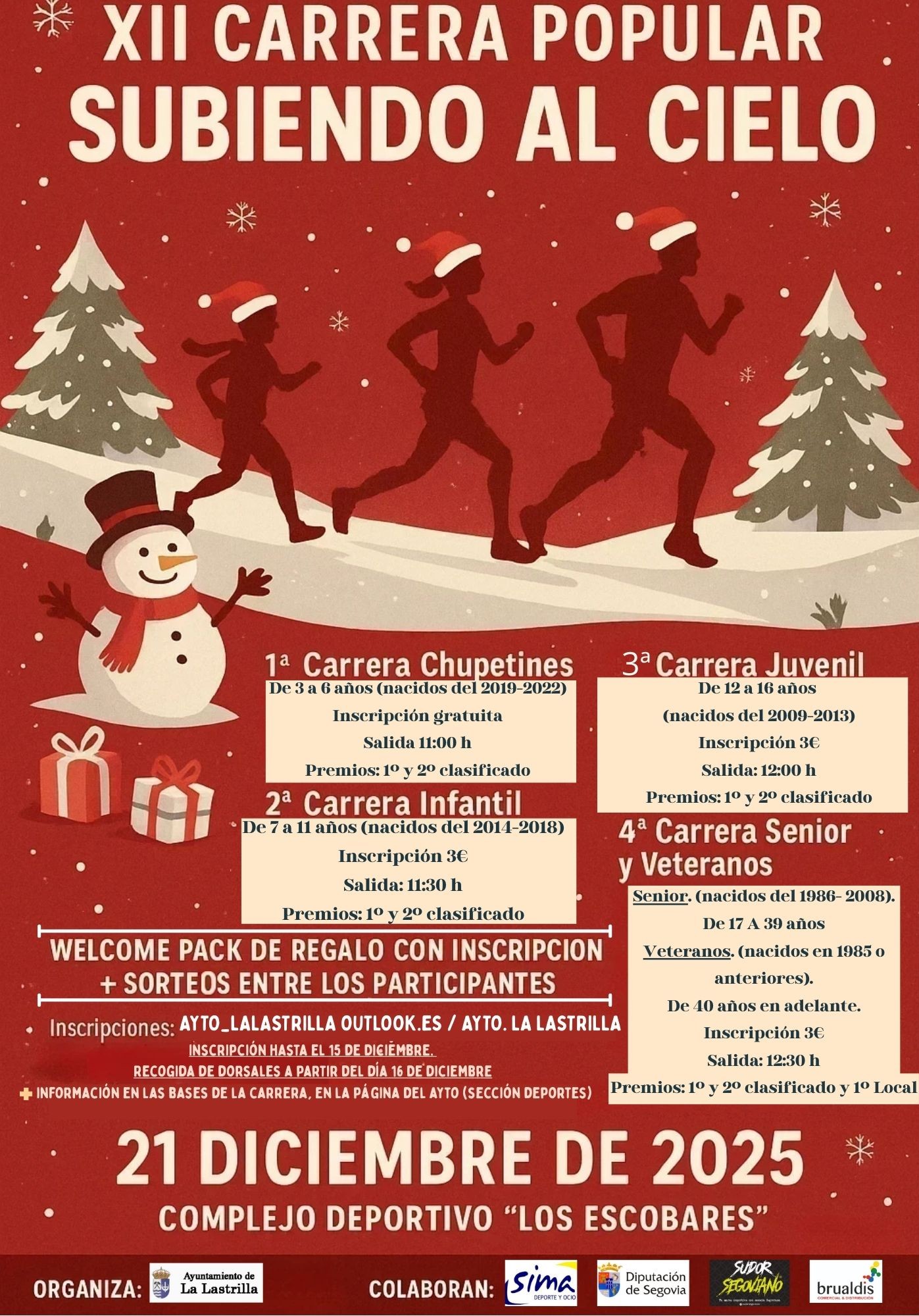 Más información en el cartel adjunto y en la página web del Ayuntamiento en el siguiente enlace: https://www.lalastrilla.es/carrera-popular