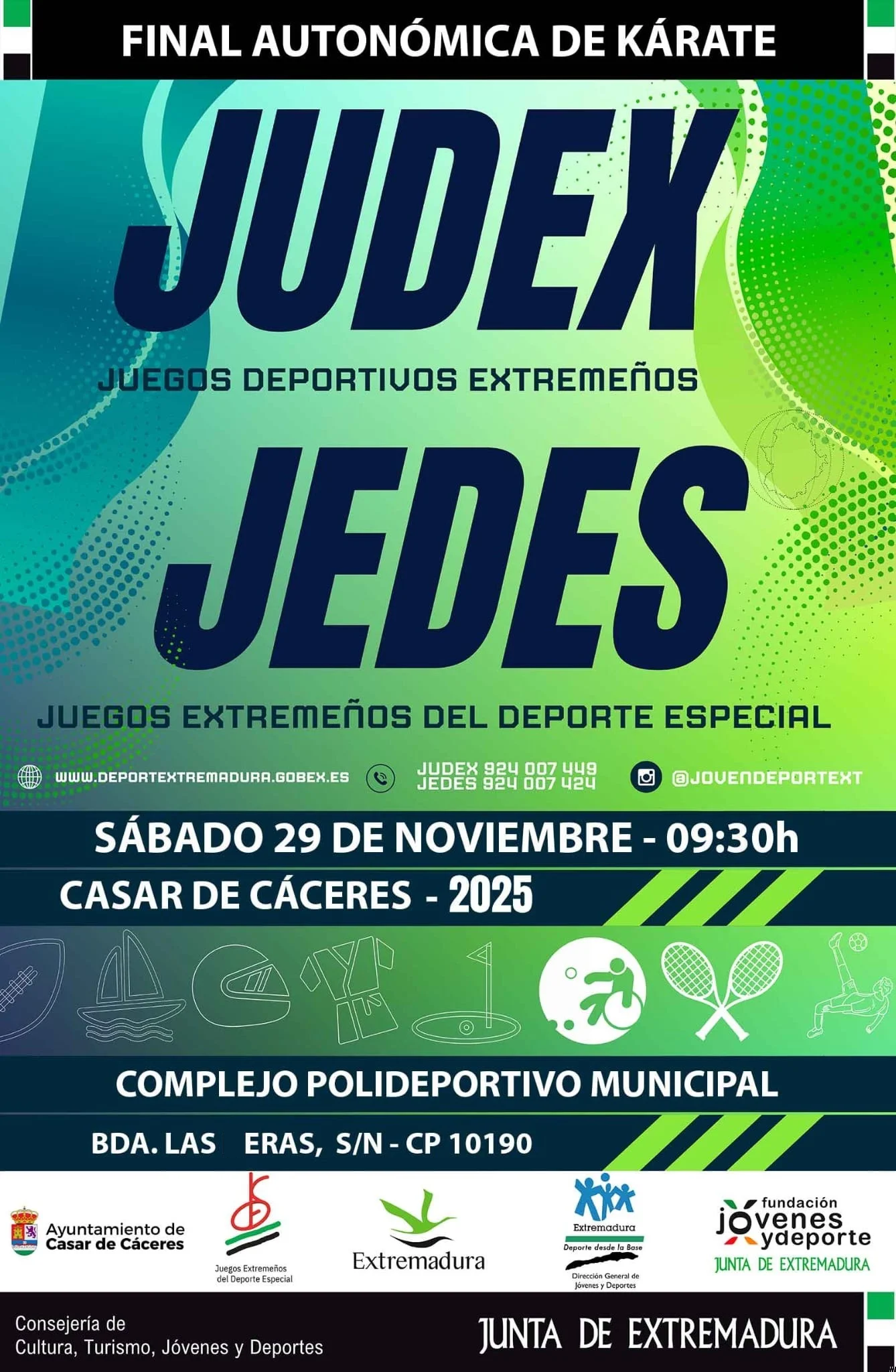 🥋 Casar de Cáceres albergará la Final Autonómica de Kárate de Extremadura de JUDEX y JEDES el próximo sábado 29 de Noviembre 👏🏼📍Pabellón municipal ⏰ A partir de las 9:30H#casardecaceres