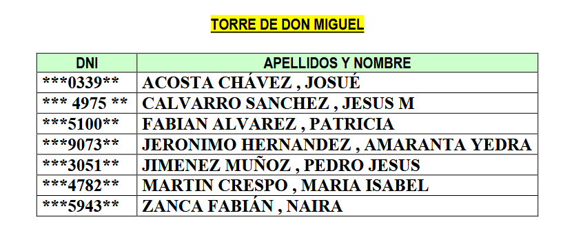 Se ruega a las personas interesadas que consulten la información y realicen los trámites dentro del plazo establecido.