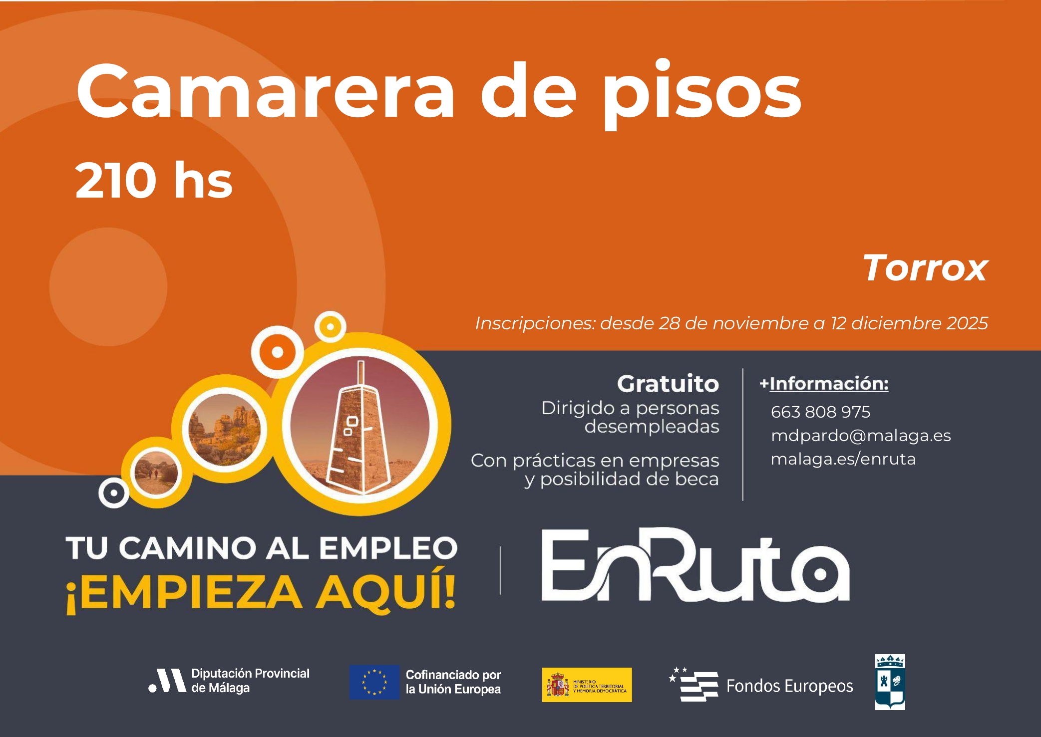 ¿Te gustaría mejorar tus oportunidades laborales en el sector turístico? El programa EnRuta de la Diputación de Málaga ofrece una formación completa de Camarera de Pisos (210 horas) diseñada para que desarrolles competencias prácticas, actualizadas y muy demandadas.