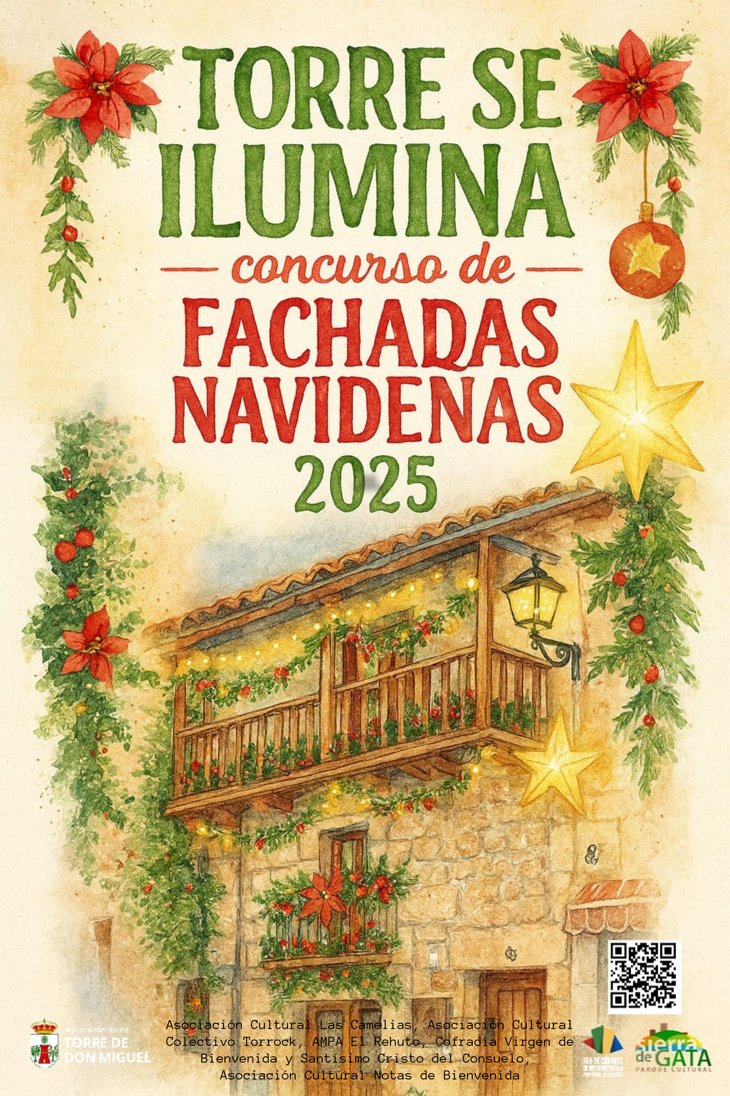 El Ayuntamiento de Torre de Don Miguel, junto con el Centro de Interpretación Comarcal Sierra de Gata y las diferentes Asociaciones y Colectivos de la localidad, invita a toda la población a participar en el concurso de decoración de fachadas para llenar nuestro pueblo de luz e ilusión esta Navidad.