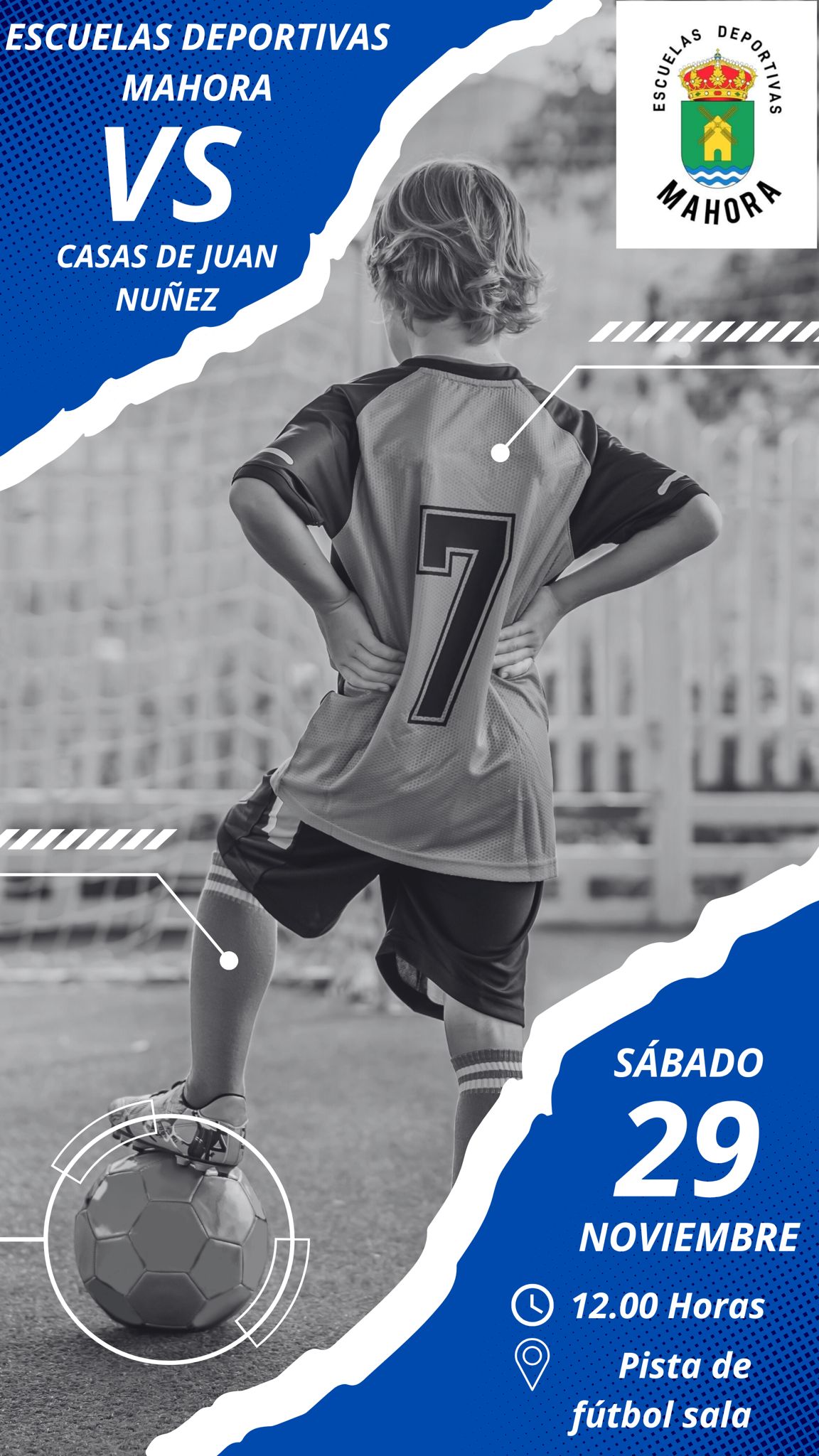 ESCUELAS DEPORTIVAS MAHORA VS CASAS DE JUAN NUÑEZSABADO 29 DE NOVIEMBRE 12:00 HPISTA DE FÚTBOL SALA