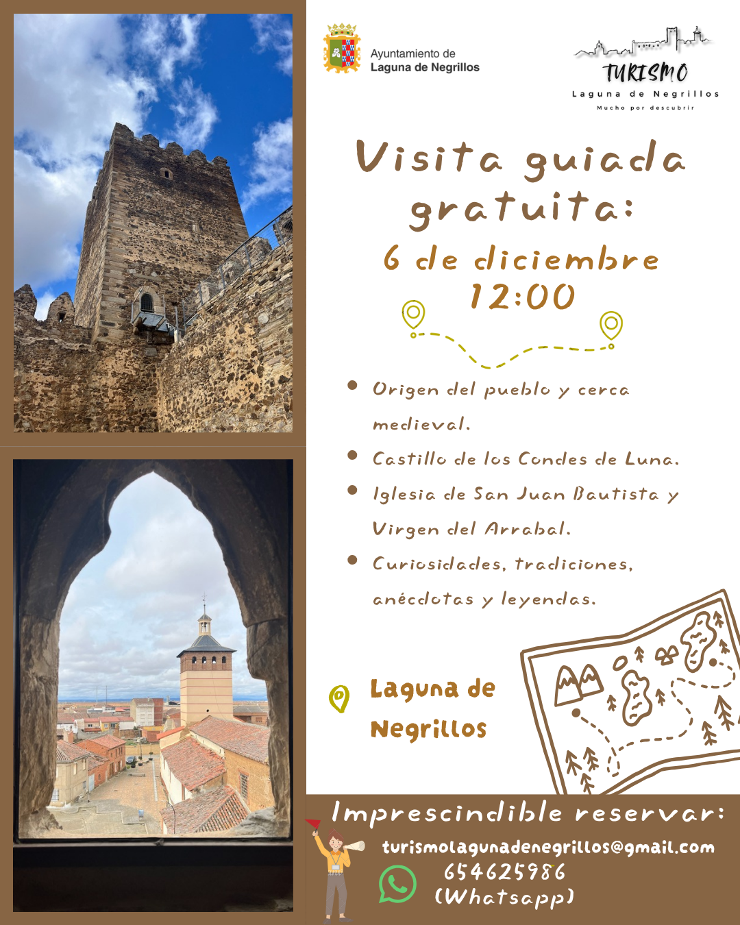 El sábado 6 de diciembre a las 12:00 h te esperamos para disfrutar de una visita guiada gratuita por Laguna de Negrillos 🏰 ✨
