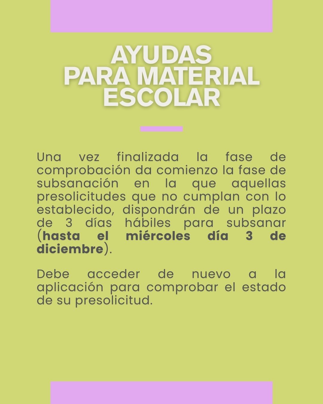 Una vez finalizada la fase de comprobación da comienzo la fase de subsanación en la que aquellas presolicitudes que no cumplan con lo establecido, dispondrán de un plazo de 3 días hábiles para subsanar (hasta el miércoles día 3 de diciembre).