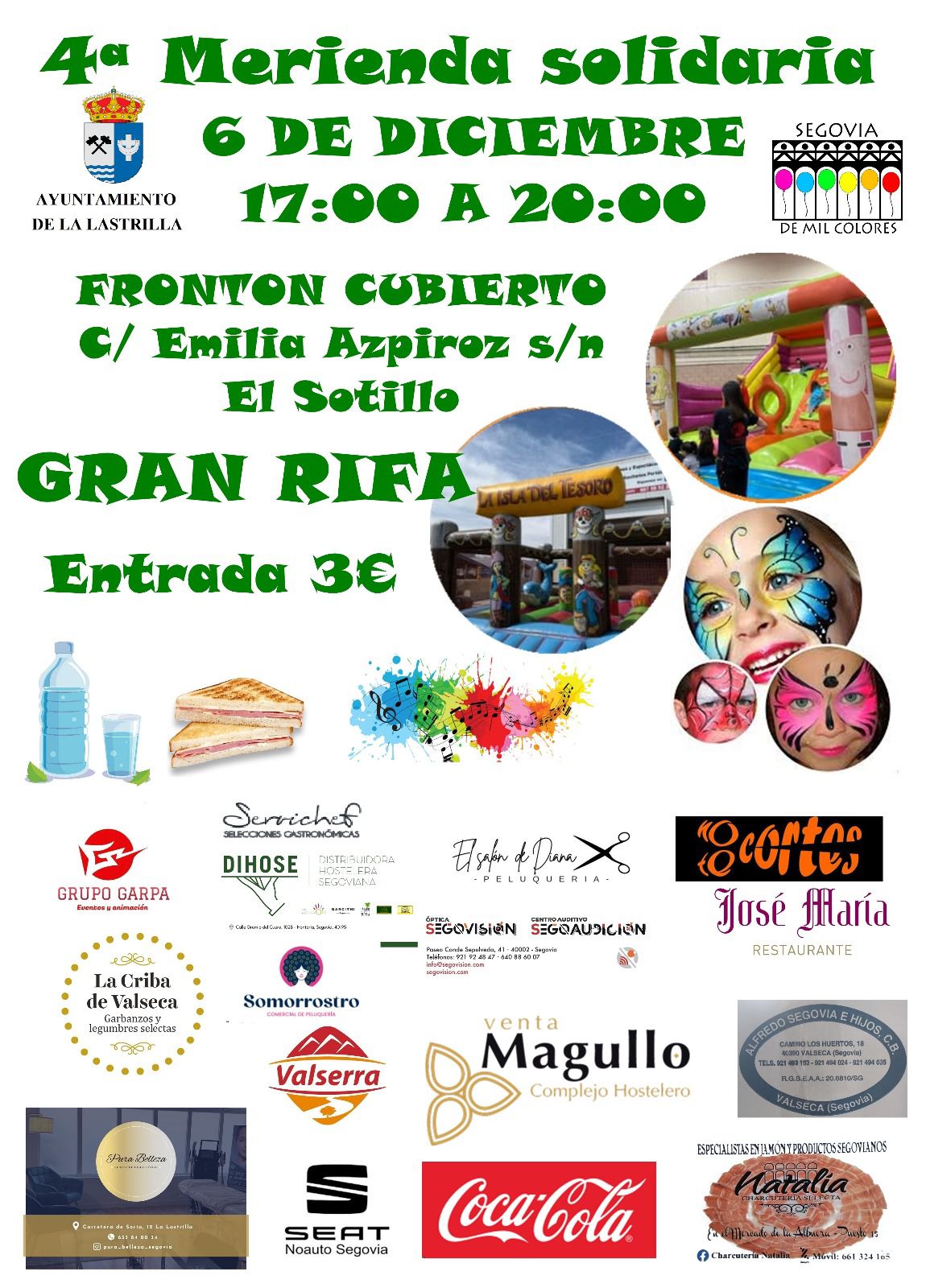 Este sábado 6 de diciembre de 2025 la asociación DE MIL COLORES, en colaboración con el Ayuntamiento de La Lastrilla, organizan la cuarta merienda solidaria de 17:00 a 20:00 horas en el Frontón de El Sotillo.Os esperamos.