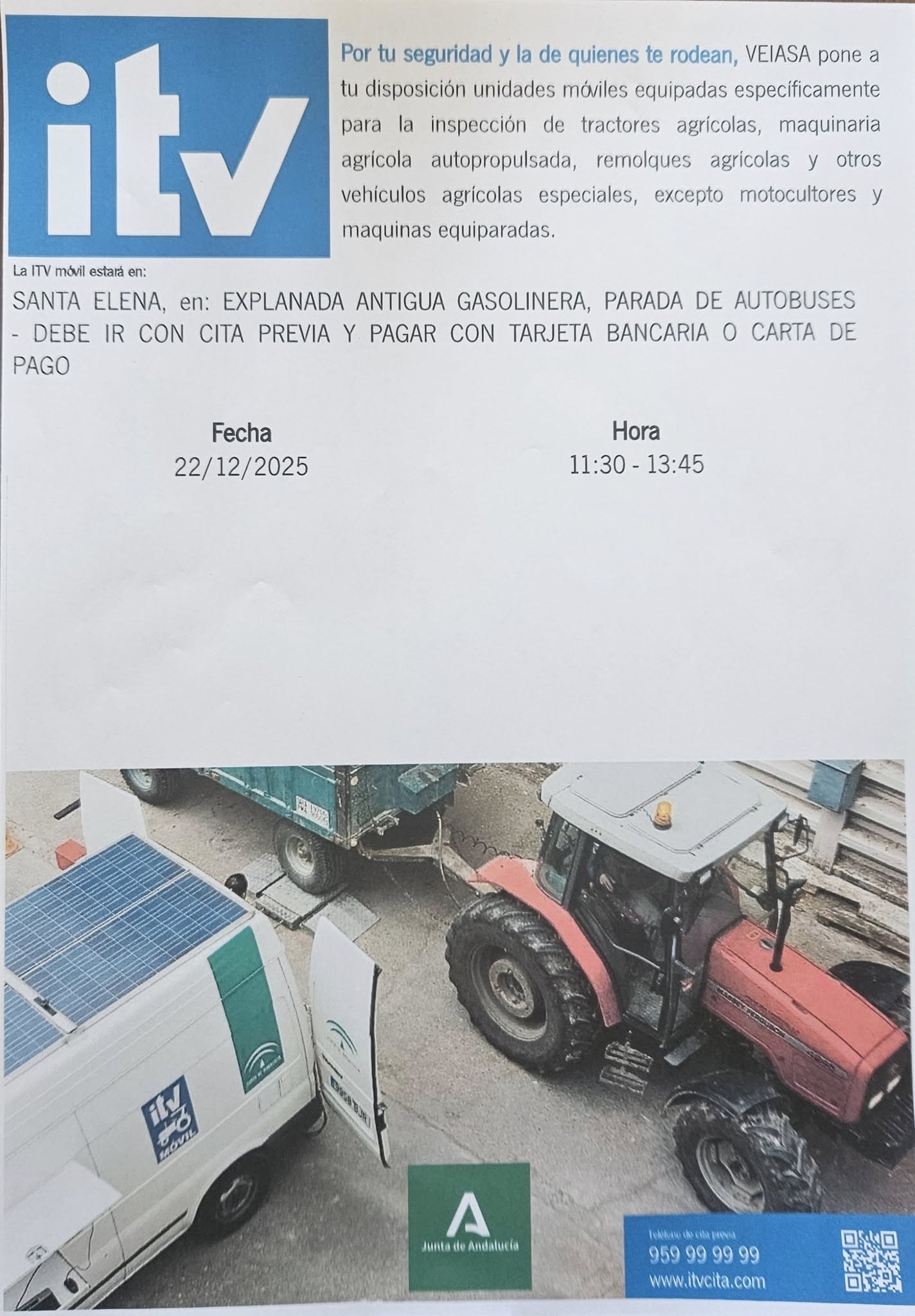 PIDE TU CITA PREVIA EN EL TELÉFONO 959999999 Y EN WWW.ITVCITA.COM