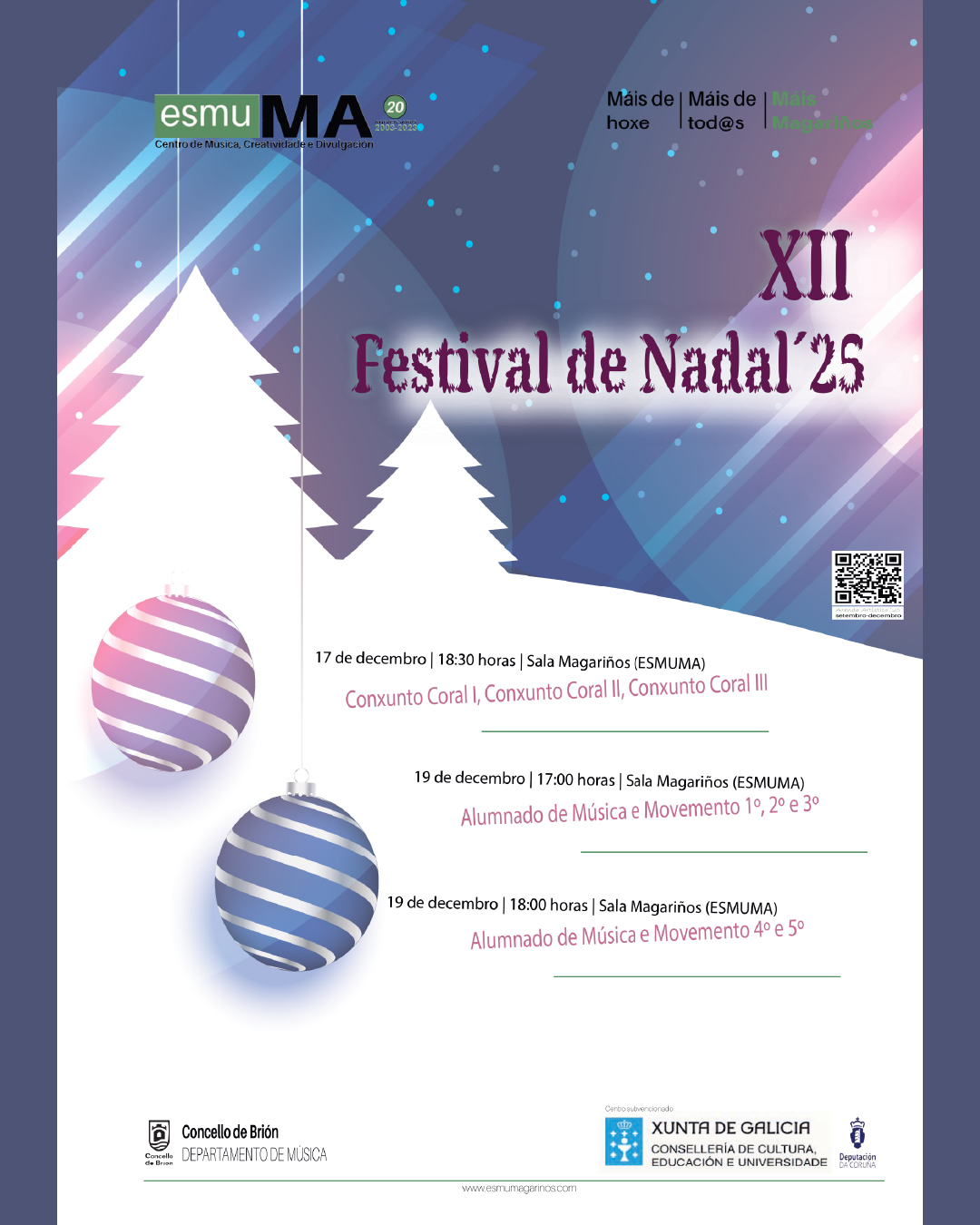 Xa está aquí a música do Nadal! Este ano celebramos a XII edición do Festival de Nadal da ESMUMA - Centro de Música, Creatividade e Divulgación. Un programa cheo de emoción e voces para todos os gustos.