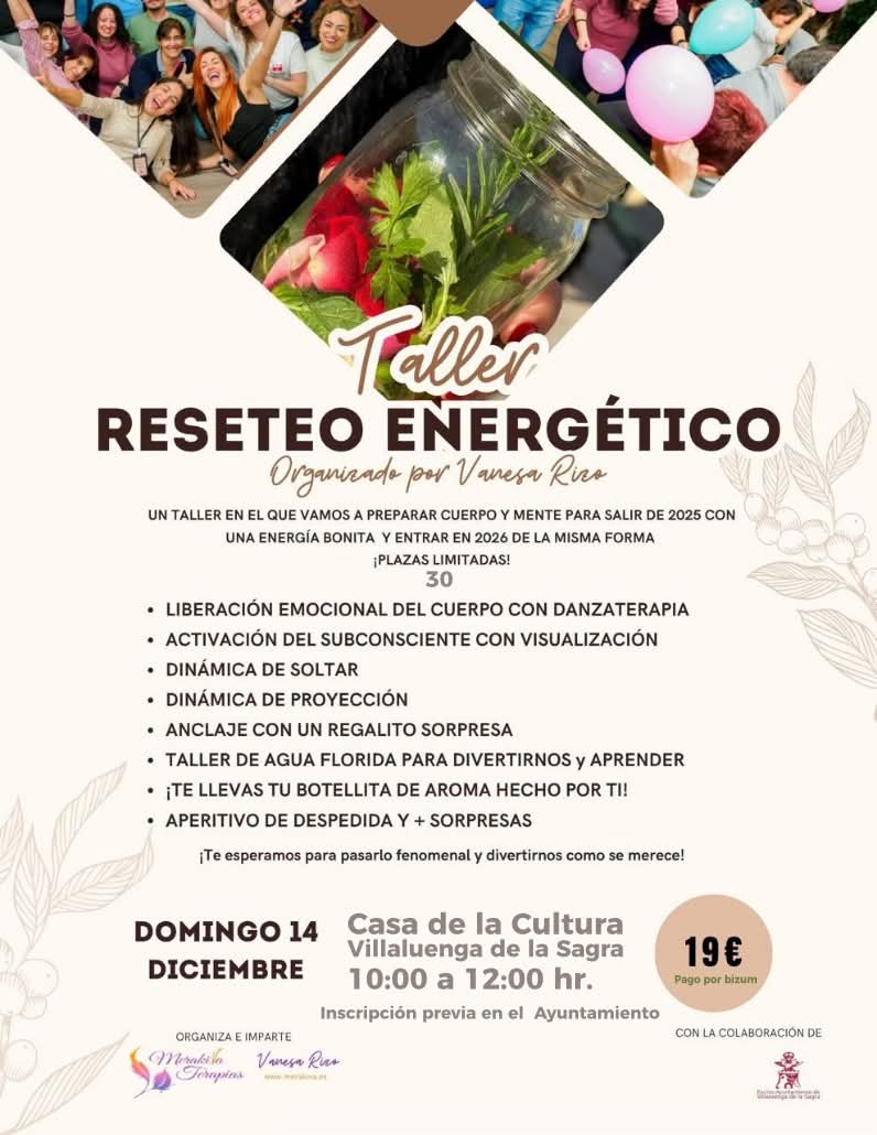 🗣Desde el Ayuntamiento de Villaluenga de la Sagra queremos invitaros a participar en una propuesta muy especial para cerrar el año con buena energía y empezar 2026 con la misma fuerza: el Taller de Reseteo Energético, organizado por Vanesa Rizo.