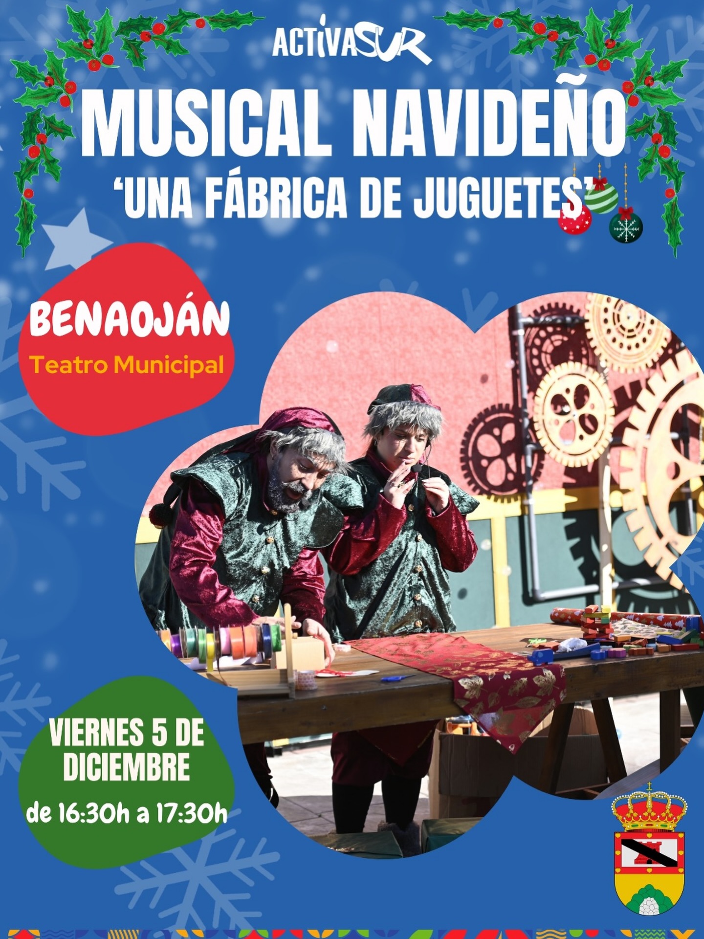 Este viernes 5 de diciembre podremos disfrutar del musical navideño “Una Fábrica de Juguetes”.Será en el Teatro Municipal a las 16:30h. #musicalnavideño #navidadenbenaoján #ayuntamientodebenaoján