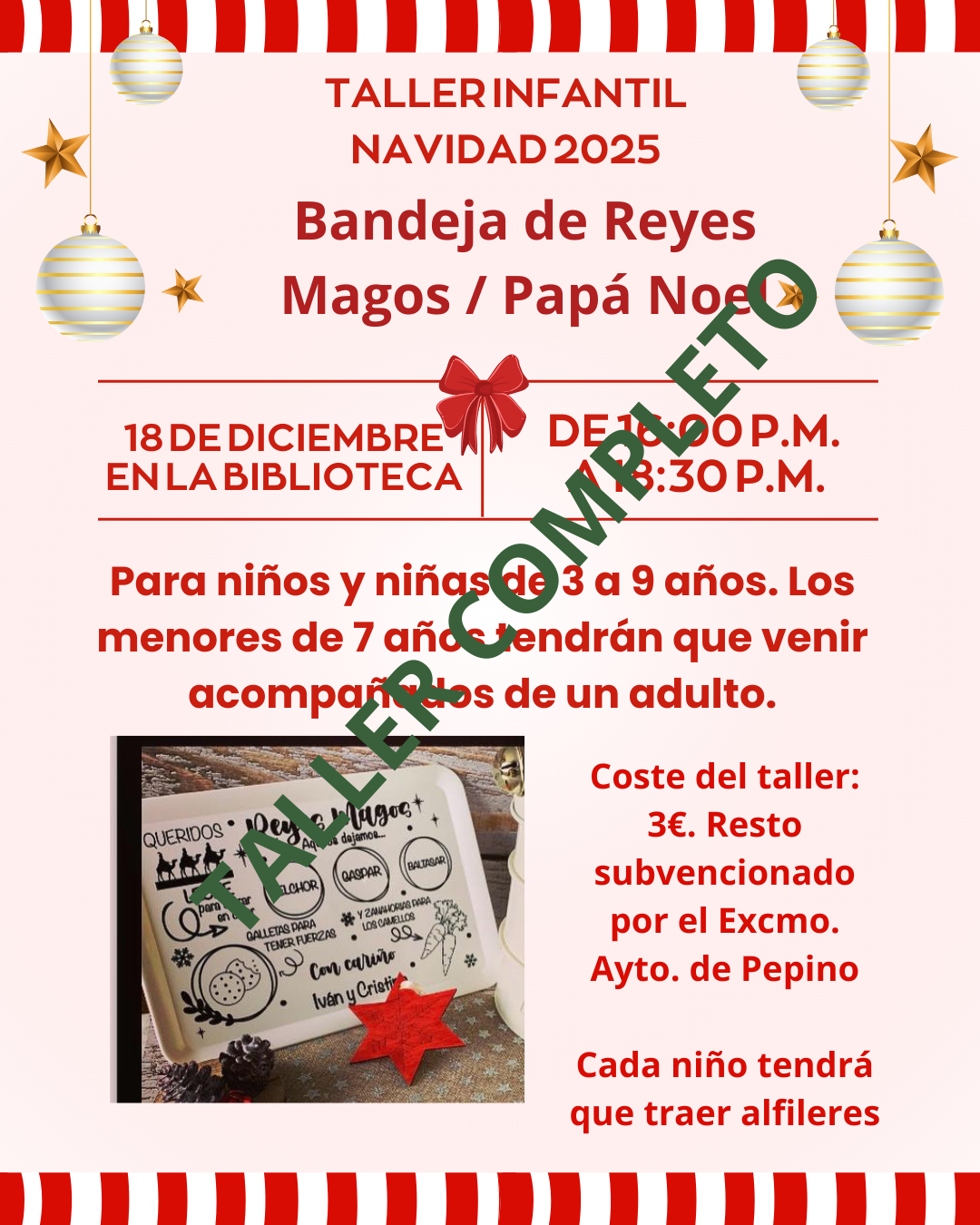 LA BIBLIOTECA PÚBLICA MUNICIPAL DE PEPINO Y EL EXCMO. AYTO AGARDECEN LA FENOMENAL ACOGIDA DEL TALLER PARA NIÑOS Y NIÑAS DE BANDEJAS NAVIDEÑAS.