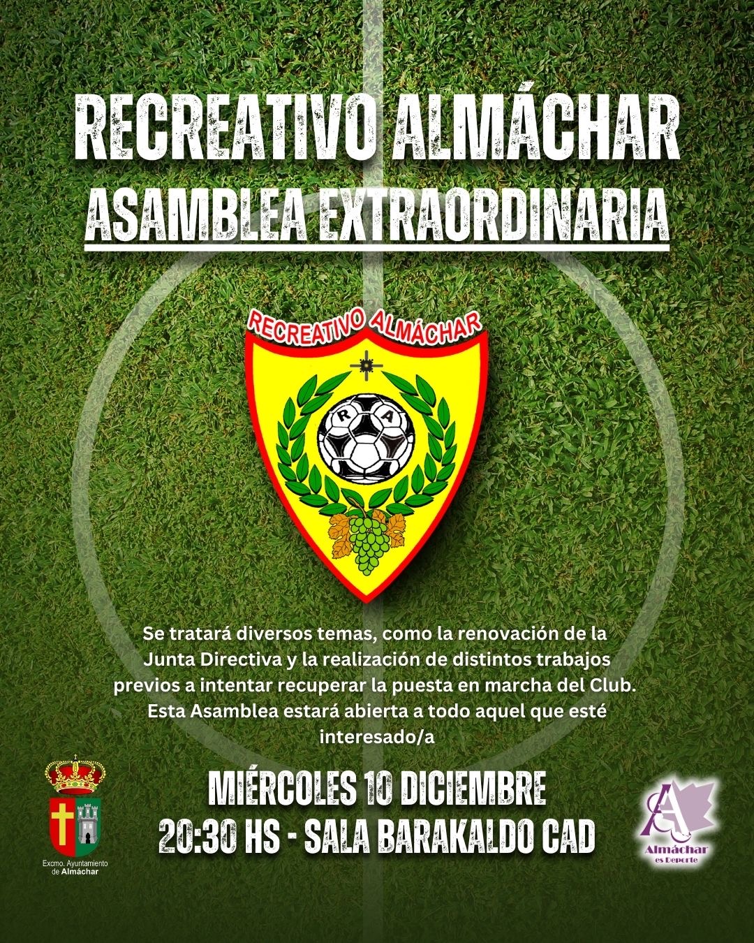📣 ASAMBLEA EXTRAORDINARIA – RECREATIVO ALMÁCHAR ⚽️💚