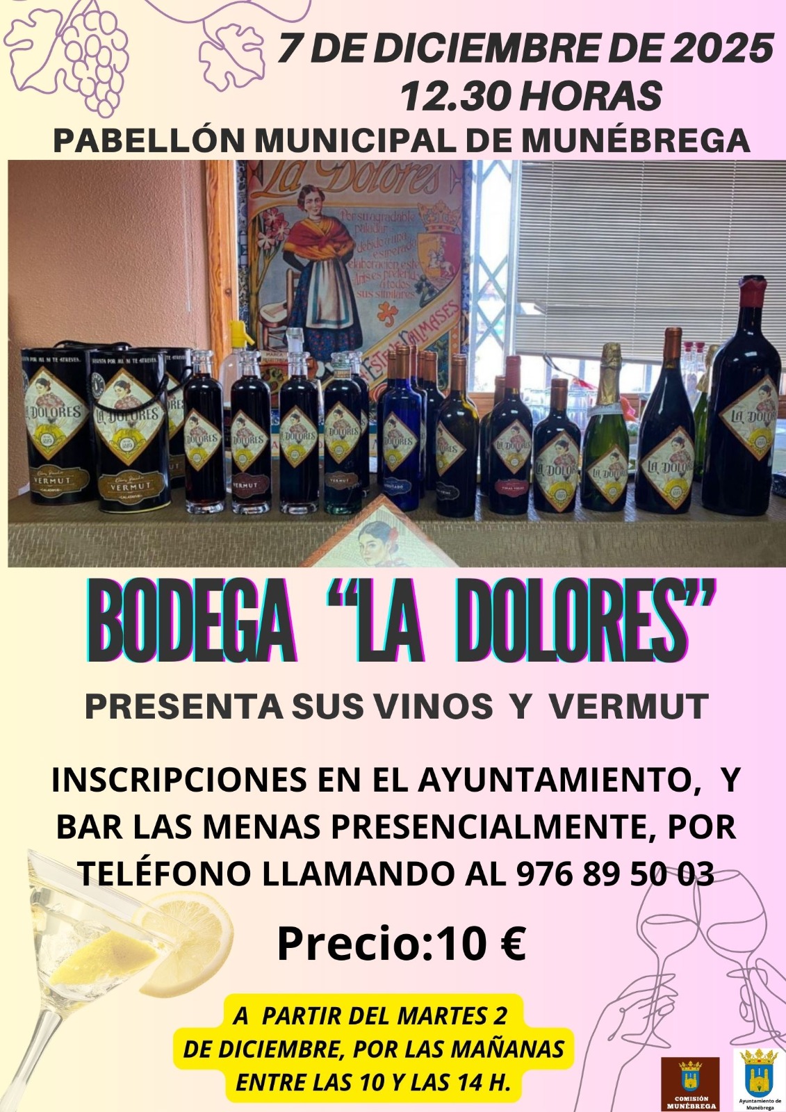 El próximo día 7 de diciembre a las 12,30 horas tendrá lugar una CATA DE VINO, en la cual en esta ocasión tendremos la oportunidad de degustar los vinos y el vermut de la Bodega "La Dolores", elaborados por el enólogo Pepe Marco, que dirigirá la cata.
