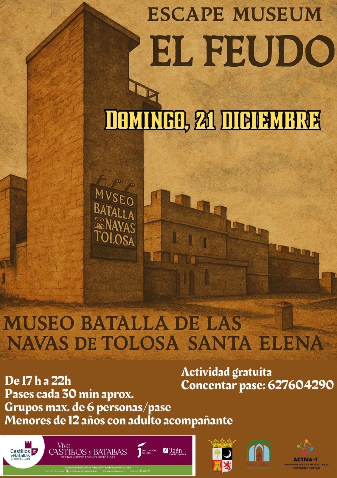 EL DOMINGO DIA 21 DE DICIEMBRE DISFRUTA ESTA ACTIVIDAD Y VIVE UNA EXPERIENCIA EN UN ENTORNO ÚNICO EL MUSEO DE LA BATALLA DE LAS NAVAS DE TOLOSA. Desde las 17 a las 22 h. en Grupos de 6 Personas. Actividad Gratuita. Concertar pase tel. 627604290