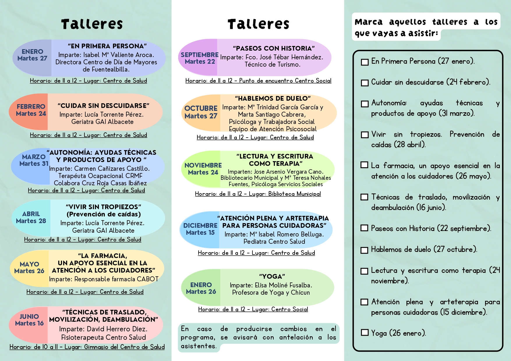 Ya puedes apuntarte en el centro social en el programa "Espacio cuidadores", que ofrece actividades a partir del mes de enero de 2.026.