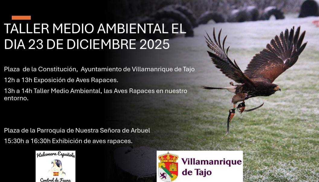 El próximo 23 de Diciembre se realiza un Taller Medioambiental con aves rapaces.