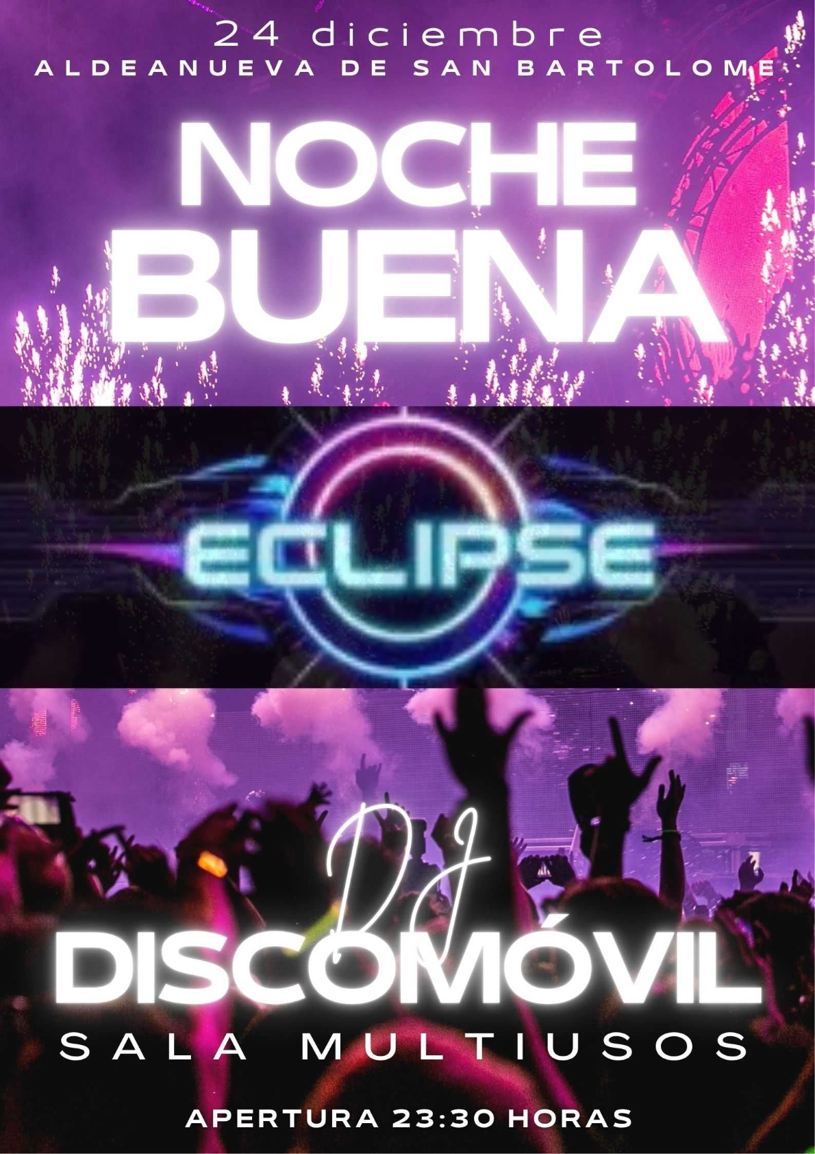 La NOCHEBUENA estará amenizada por la DISCOMOVIL "ECLIPSE" en la SALA MULTIUSOS a partir de las 23:30 horas.Les esperamos.