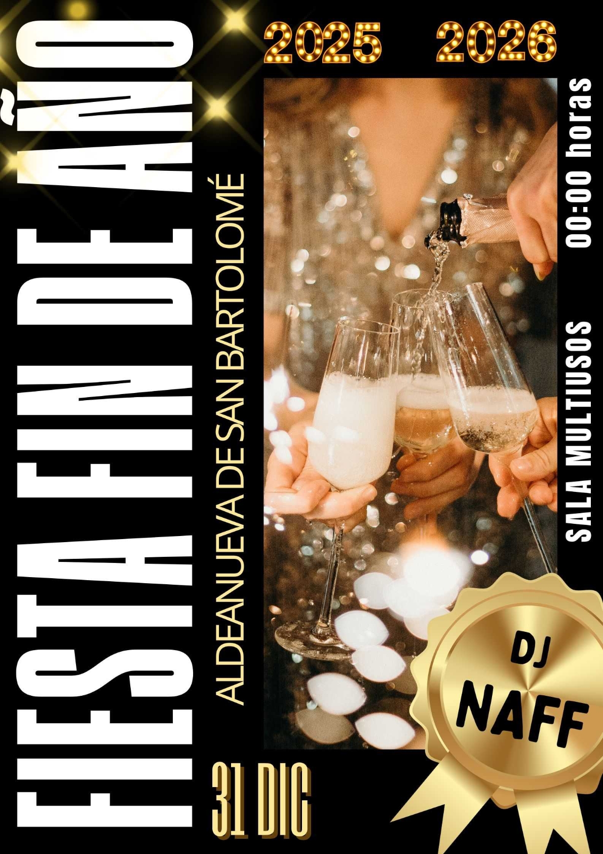 ¡¡Despediremos este 2025 con Dj NAFF!!La fiesta de NOCHEVIEJA comenzará a partir de las 00:30 horas en la SALA MULTIUSOS. OS ESPERAMOS