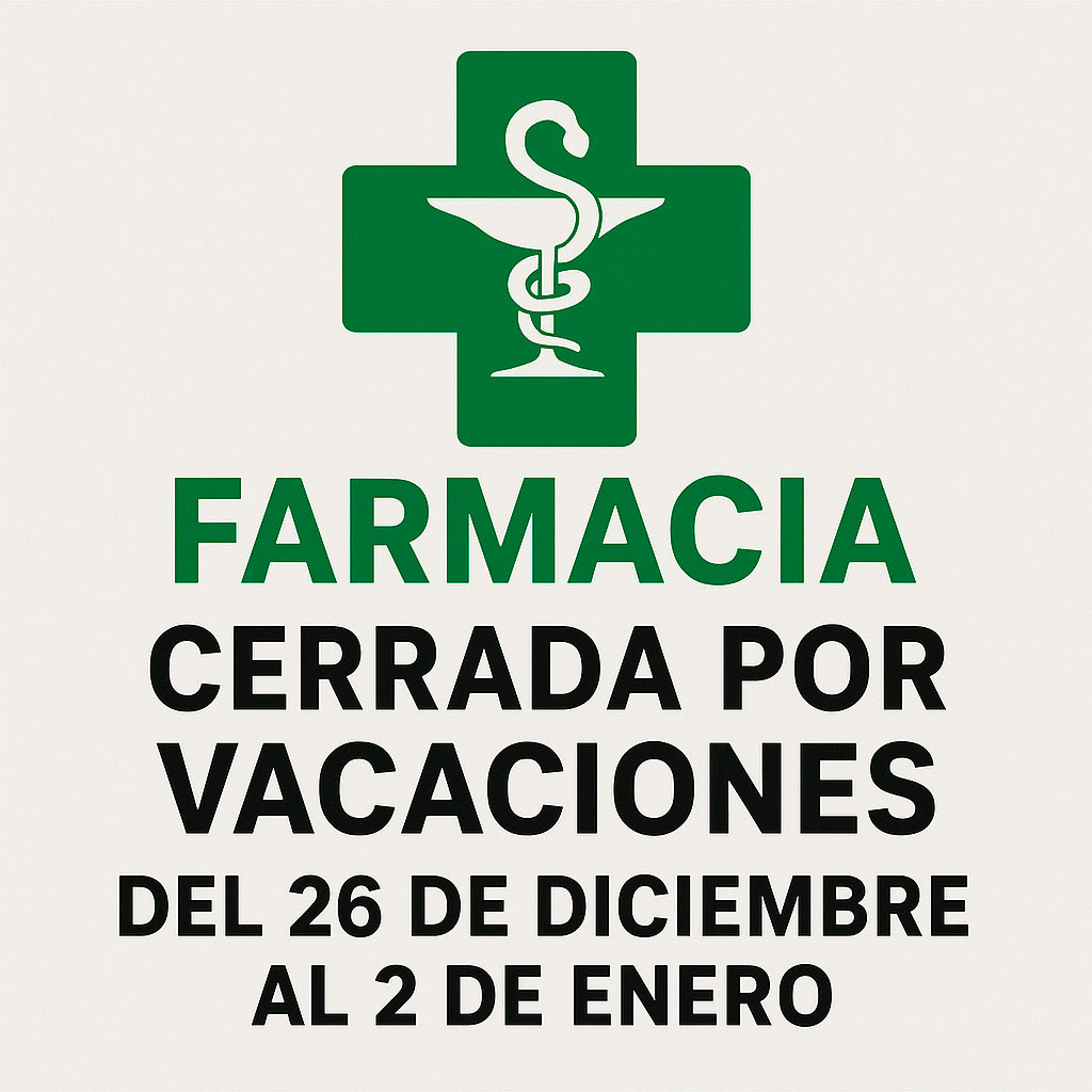 La Farmacia de El Picazo informa que estará cerrada por vacaciones desde el próximo 26 de diciembre al 2 de enero.
