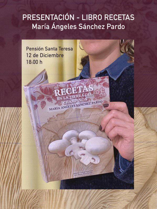Hoy, viernes 12, a las 18:00 h, tendrá lugar la presentación del libro de recetas elaborado con champiñón y setas, creado por María Ángeles Sánchez Pardo.