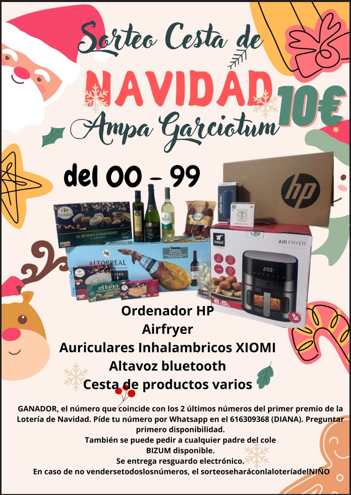 El AMPA del Colegio presenta su gran Cesta de Navidad, cargada de regalos que harán brillar tus fiestas como un árbol recién encendido: