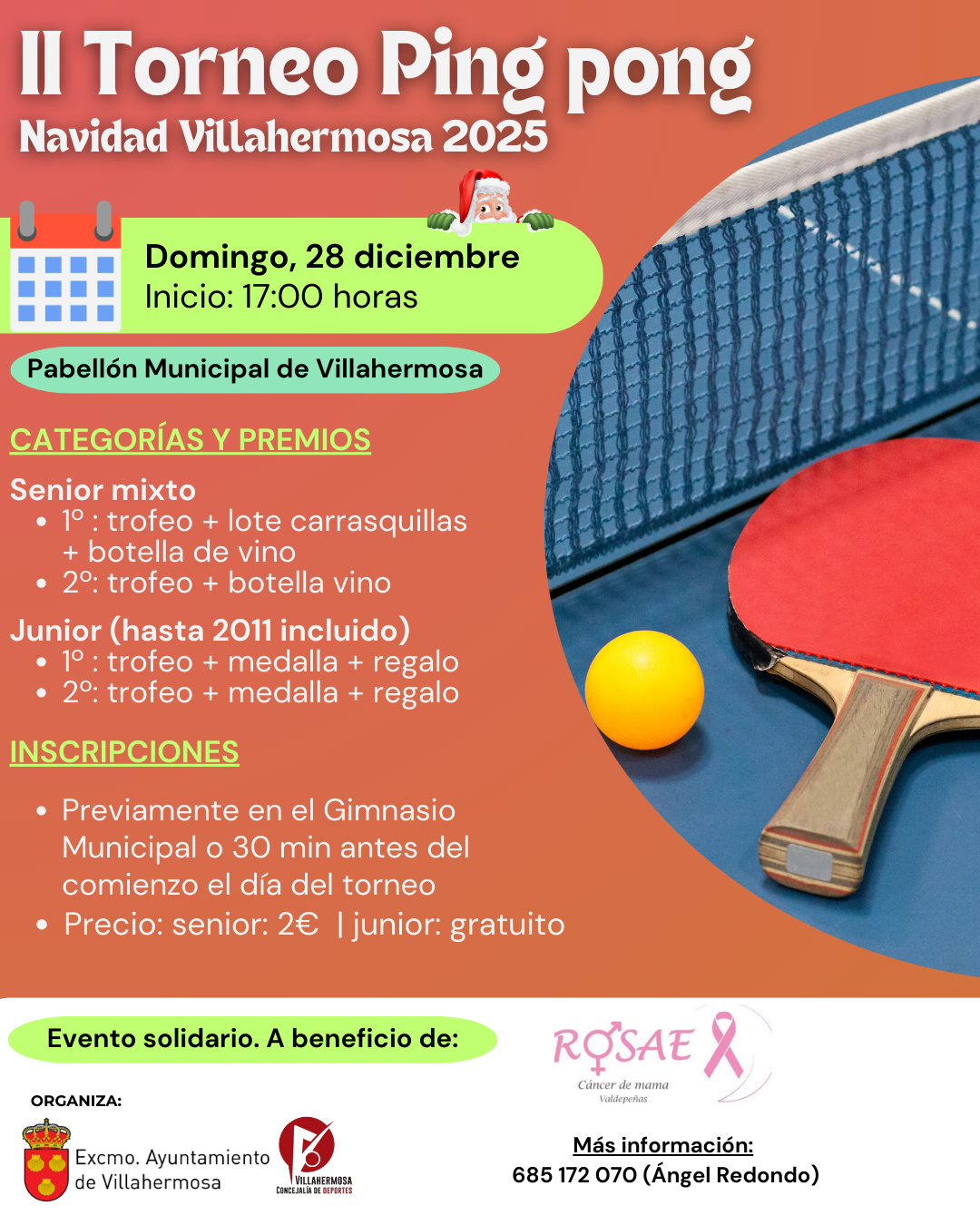 Un año más celebraremos el torneo de ping-pong, navideño que viene cargadito de premios. ¿A qué esperas para apuntarte?