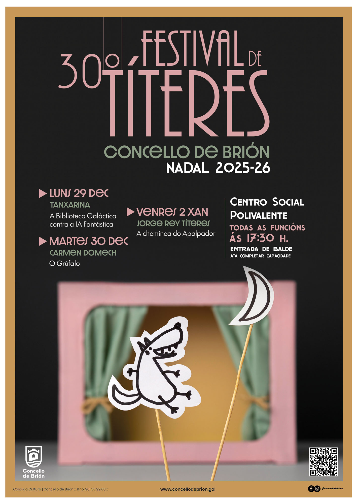Regresan os monicreques por Nadal e Aninovo. O Concello de Brión organiza o XXX Festival de Títeres, que se vai celebrar en decembro de 2025 e xaneiro de 2026.