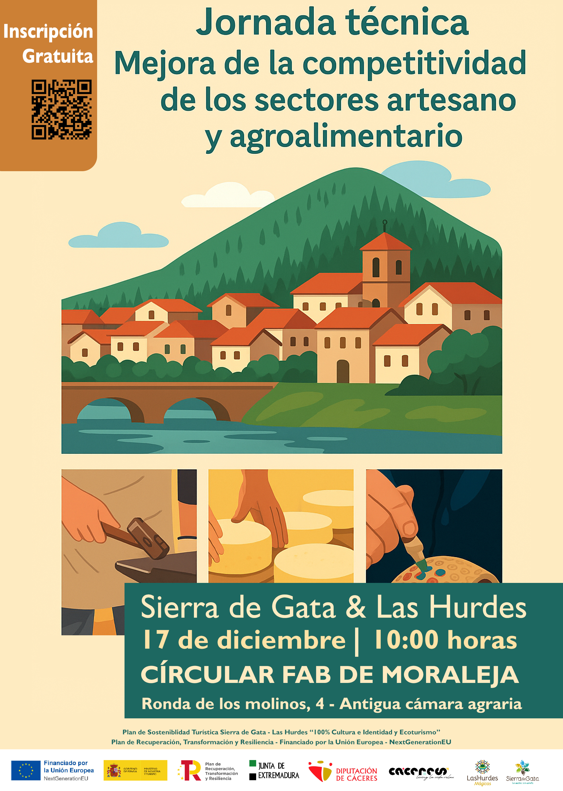 La Diputación de Cáceres invita a productores, artesanos y establecimientos HORECA de Sierra de Gata y Las Hurdes a participar en las Jornadas de Comercialización, Distribución y Mejora de la Competitividad, enmarcadas en el Plan de Sostenibilidad Turística “100% Cultura e Identidad y Ecoturismo”.