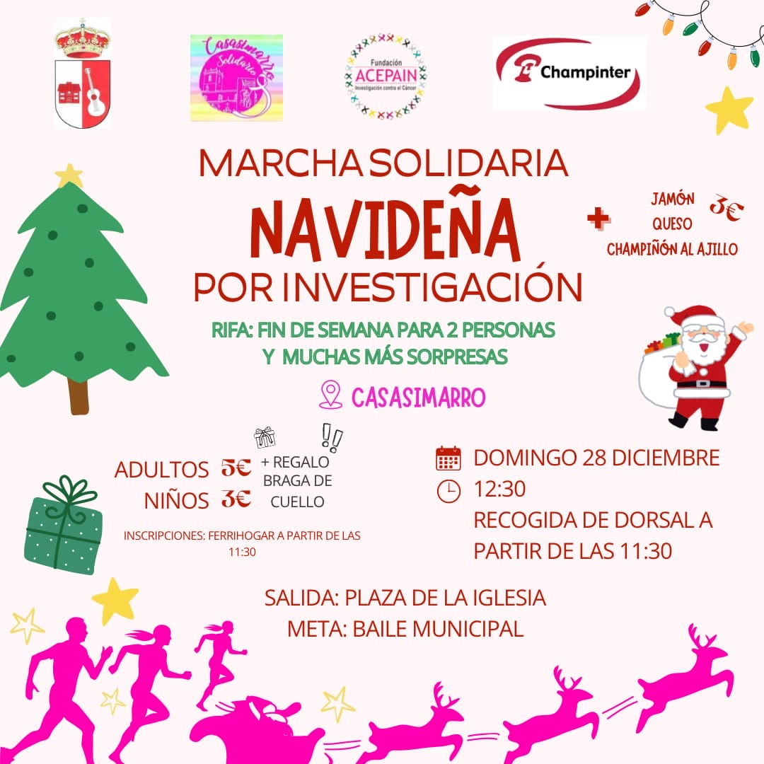 Debido a las condiciones meteorológicas adversas para este fin de semana, se traslada de fecha la "marcha solidaria a favor de la Asociación Junta Local de Casasimarro contra el Cáncer" al próximo domingo día 28 de diciembre.