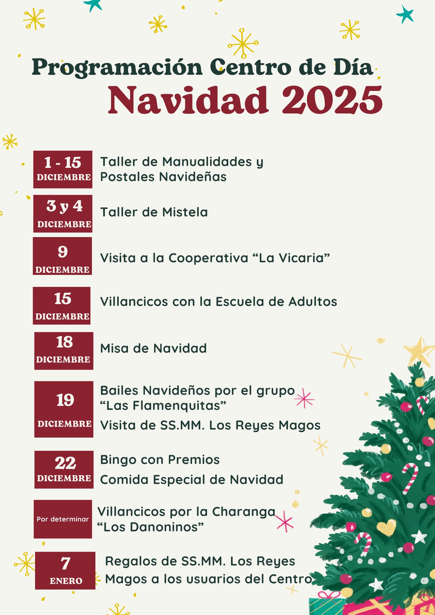 Desde el Ayuntamiento agradecemos al equipo del Centro de Día su implicación y el cariño con el que han preparado esta programación, pensada para que nuestros mayores vivan una Navidad activa, participativa y llena de momentos especiales.