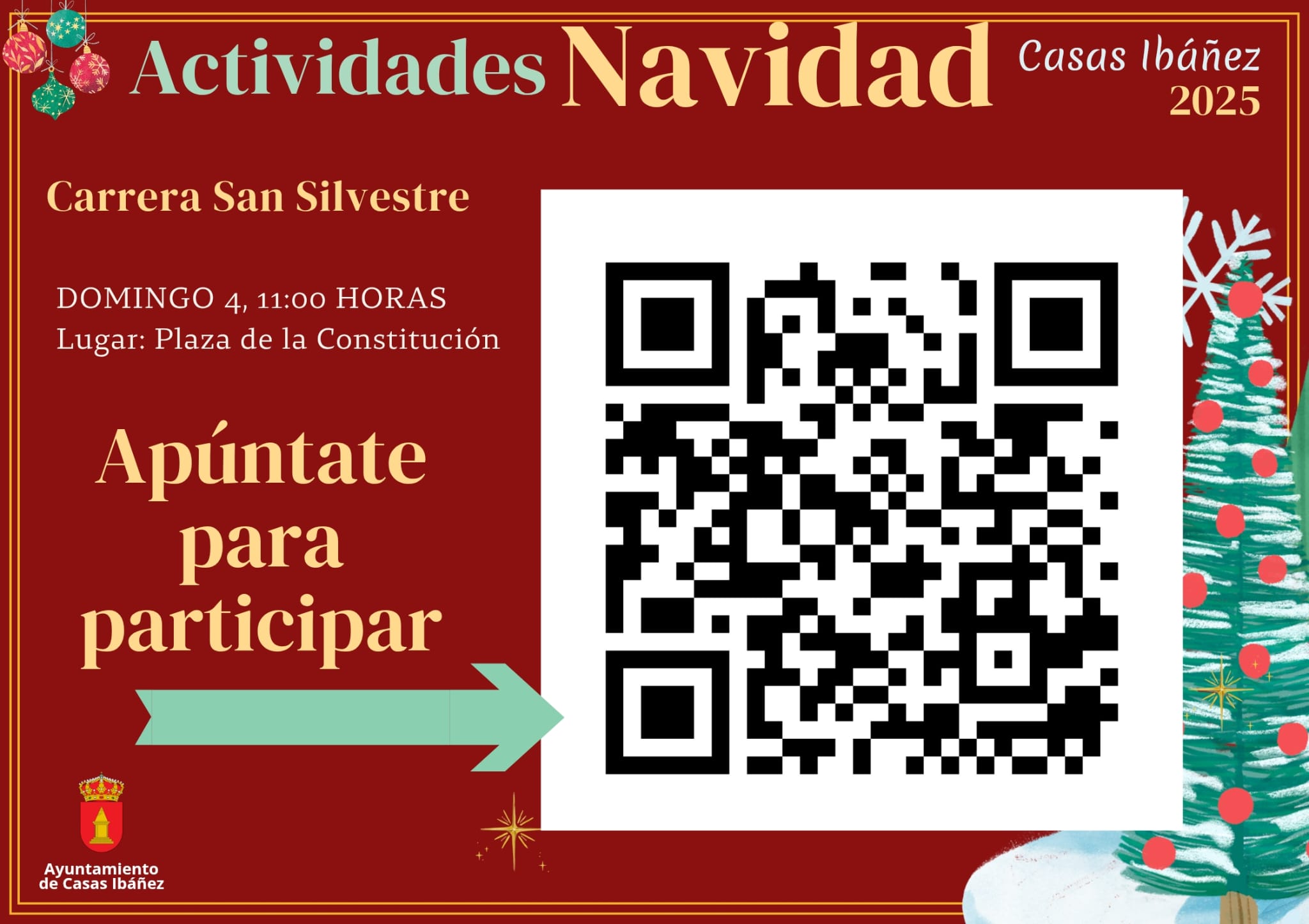 El próximo 4 de enero vuelve la San Silvestre a Casas Ibáñez.A las 11 horas de la mañana en la Plaza de la Constitución.‼️‼️Para participar es Obligatorio inscribirte. A través del QR de la imagen.